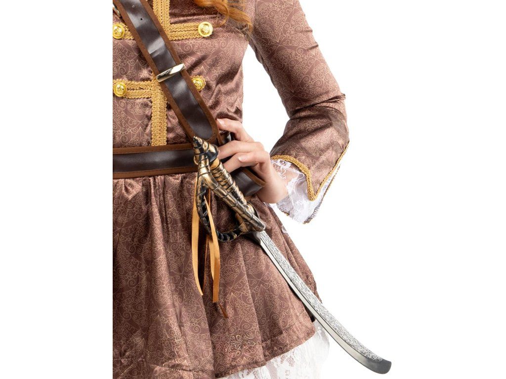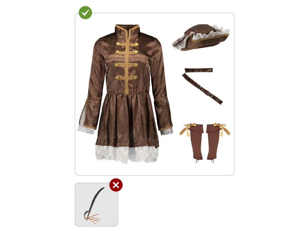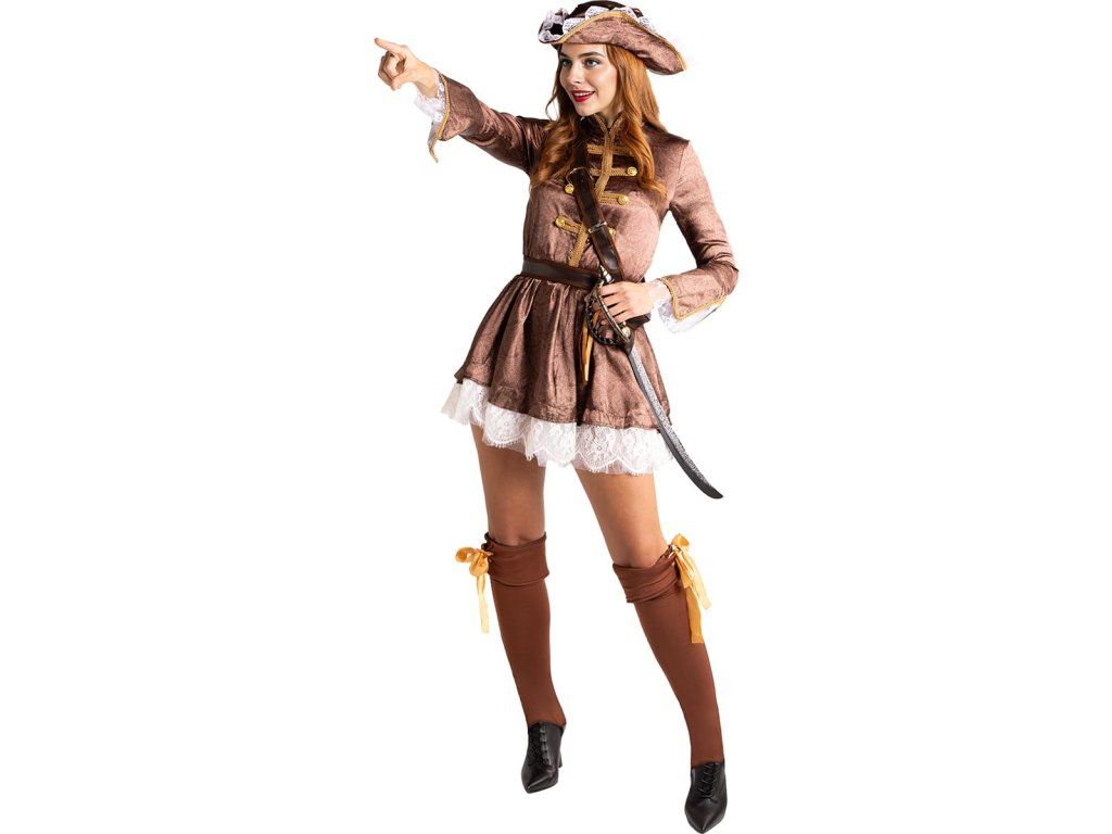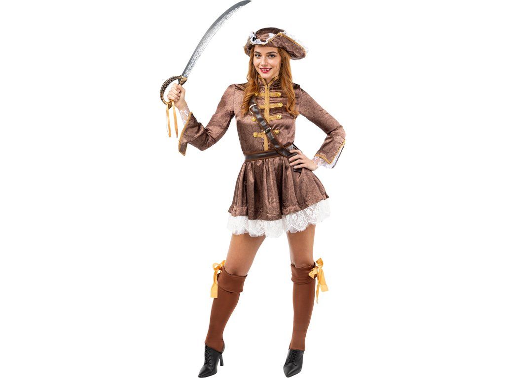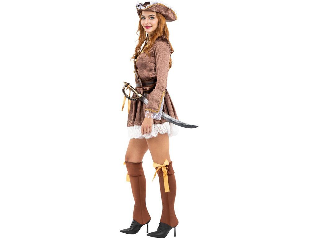 Pregătește-te pentru o aventură pe valurile fanteziei cu costumul nostru de damă Pirata colonială! Acest costum este conceput pentru toate femeile curajoase care doresc să domine fiecare petrecere cu eleganță și o notă de rebeliune. Setul conține o rochie stilată cu volane, o vestă de pirat iconică și, desigur, nelipsita pălărie cu pană – pentru că o pirată adevărată trebuie să fie mereu impecabilă! Materialele sunt atent selecționate pentru confort maxim și durabilitate, ca să faci față și celor mai sălbatice dansuri pe punte. Datorită croielii gândite cu atenție și detaliilor deosebite, te vei simți ca o adevărată căpitană – pregătită să vâneze comori (sau măcar complimente). Îmbracă acest costum și devino vedeta oricărei petreceri de pirați, carnaval sau petrecere tematică. Sus pânzele, aventura începe!