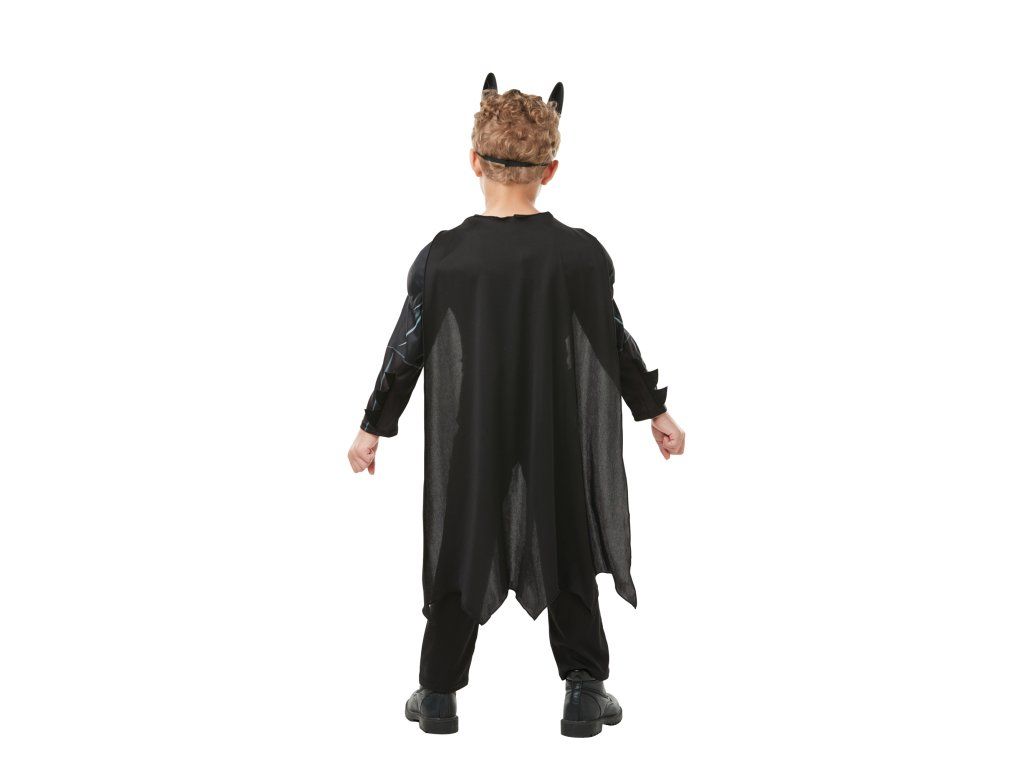 Pachetul conține un overall detaliat cu imprimeu de armură Batman, o pelerină stilată, curea și, desigur, celebra mască datorită căreia nimeni nu te va recunoaște – nici măcar propria ta pisică!