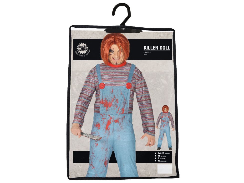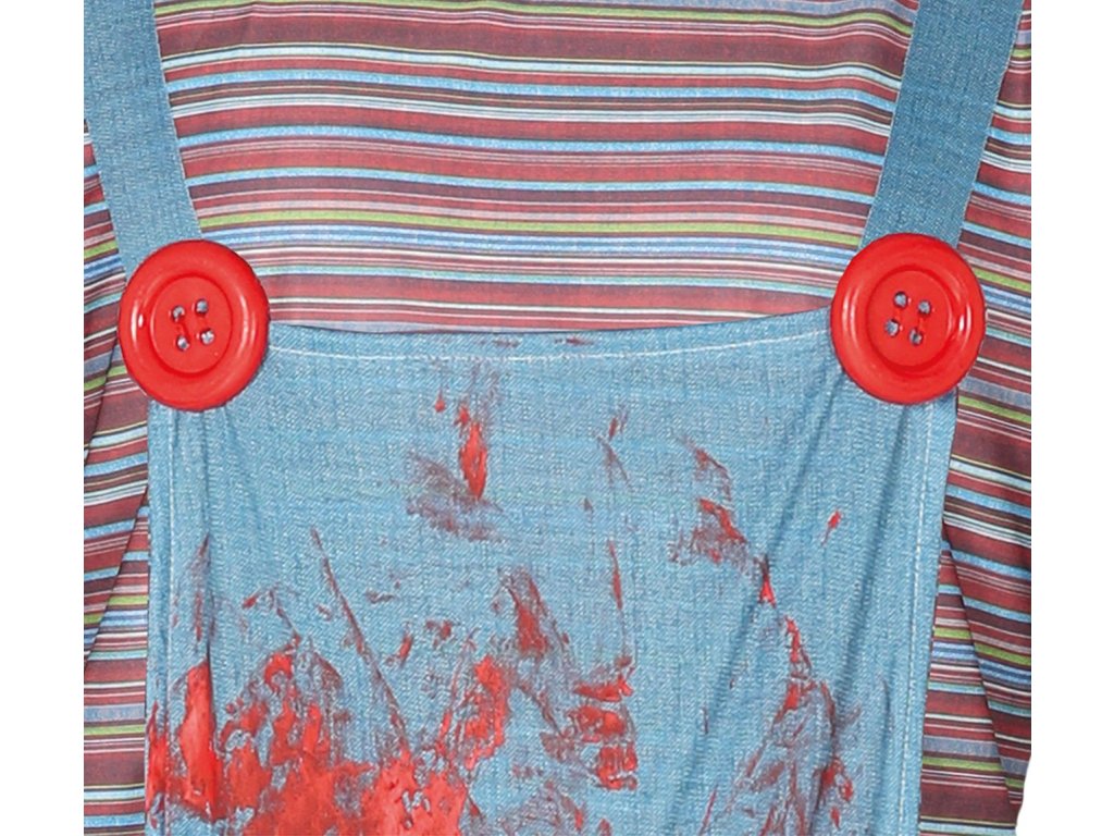 Acest costum de carnaval pentru băieți va impresiona pe toată lumea. Devino, datorită acestui costum de Păpușa ucigașă Chucky Teeneger, vedeta petrecerii. Este potrivit pentru carnaval sau o petrecere tematică cu costume.