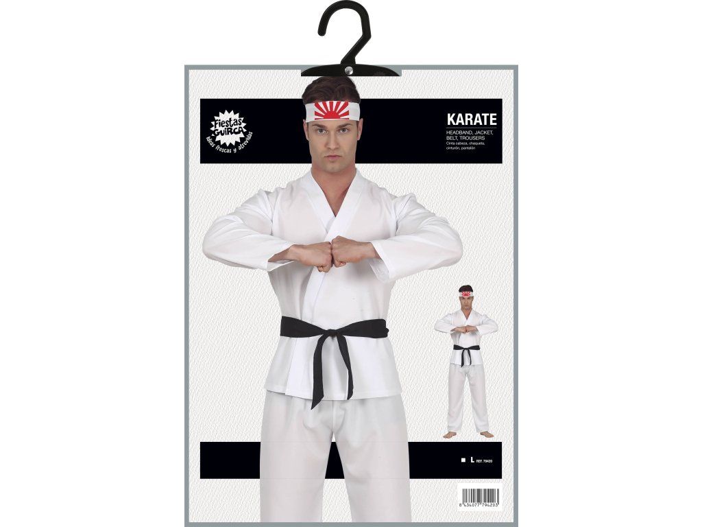 Mergeți la Carnaval sau la o petrecere? Purtați acest costum original de Karate Man cu care veți fi cu siguranță vedeta serii. Acesta este potrivit pentru petrecerea de Halloween, carnaval sau alte ocazii. Lăsăm utilizarea la latitudinea dvs. și a imaginației dvs.