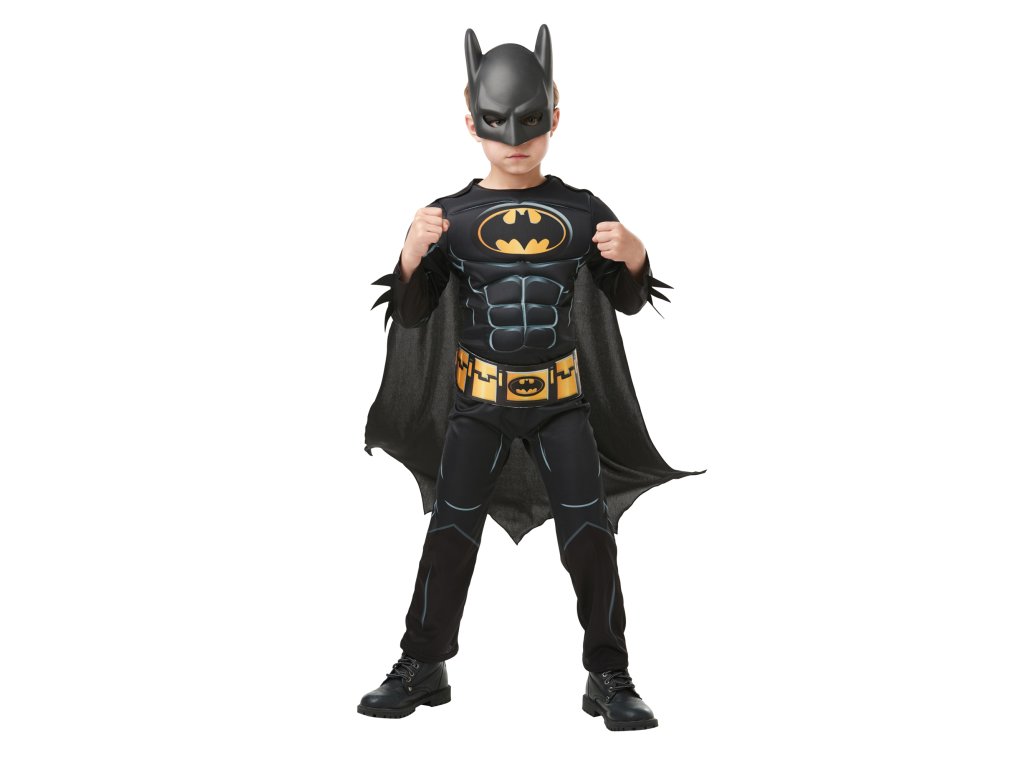 Copilul D-voastră se pregătește pentru un carnaval sau o petrecere de Halloween? Cu acest costum inspirat din filmul Batman, el va fi cu siguranță vedeta serii! Culoarea neagră și simbolul liliacului conferă costumului un aspect întunecat și misterios, caracteristic lui Batman. Nu numai că acest costum este elegant, dar aduce și autenticitate și forță iconicului Cavaler Întunecat.