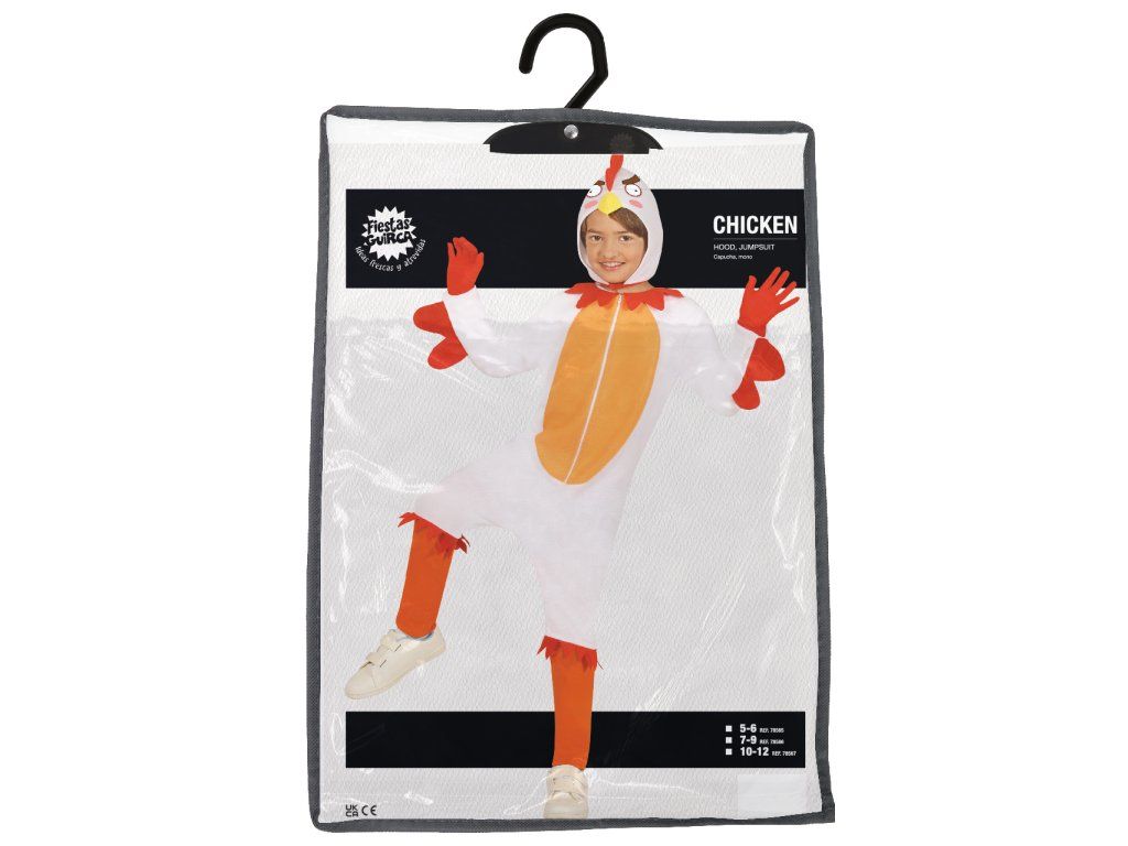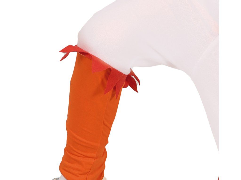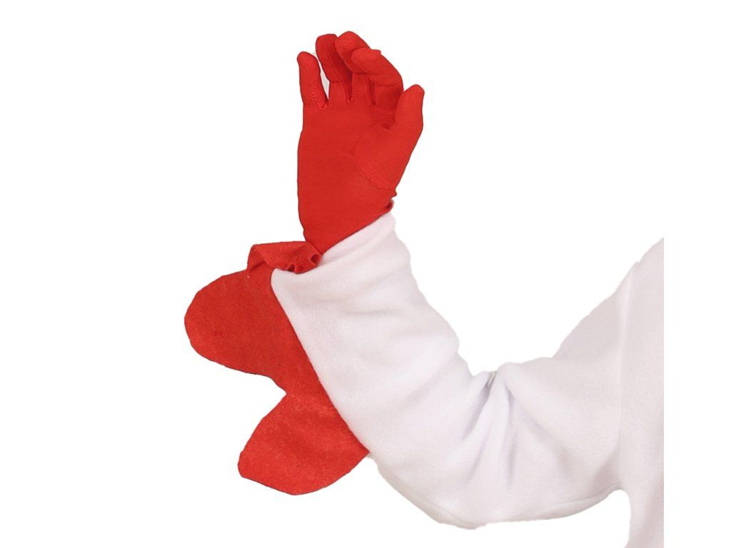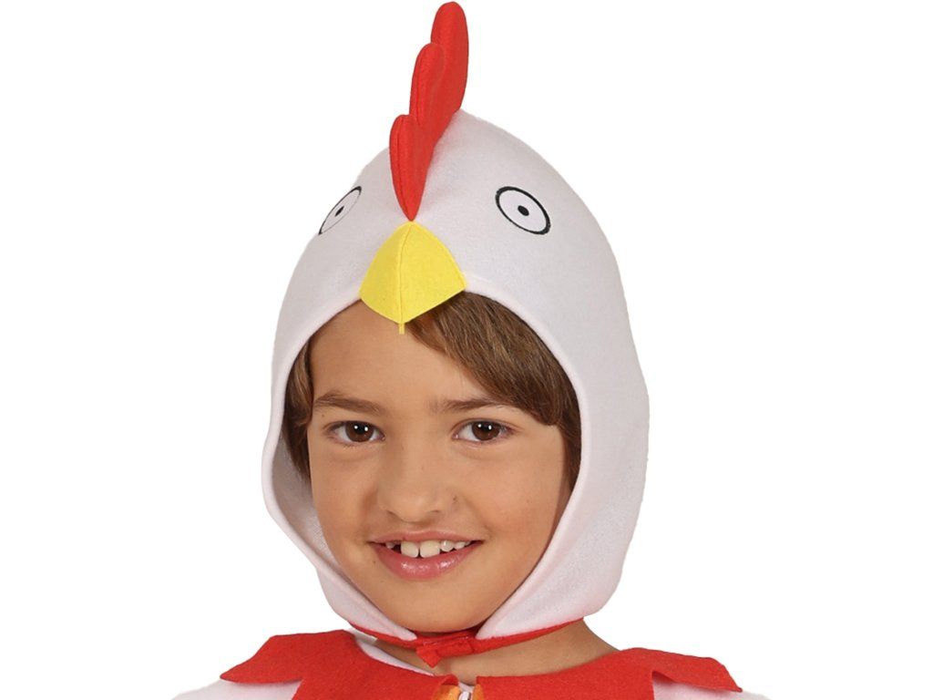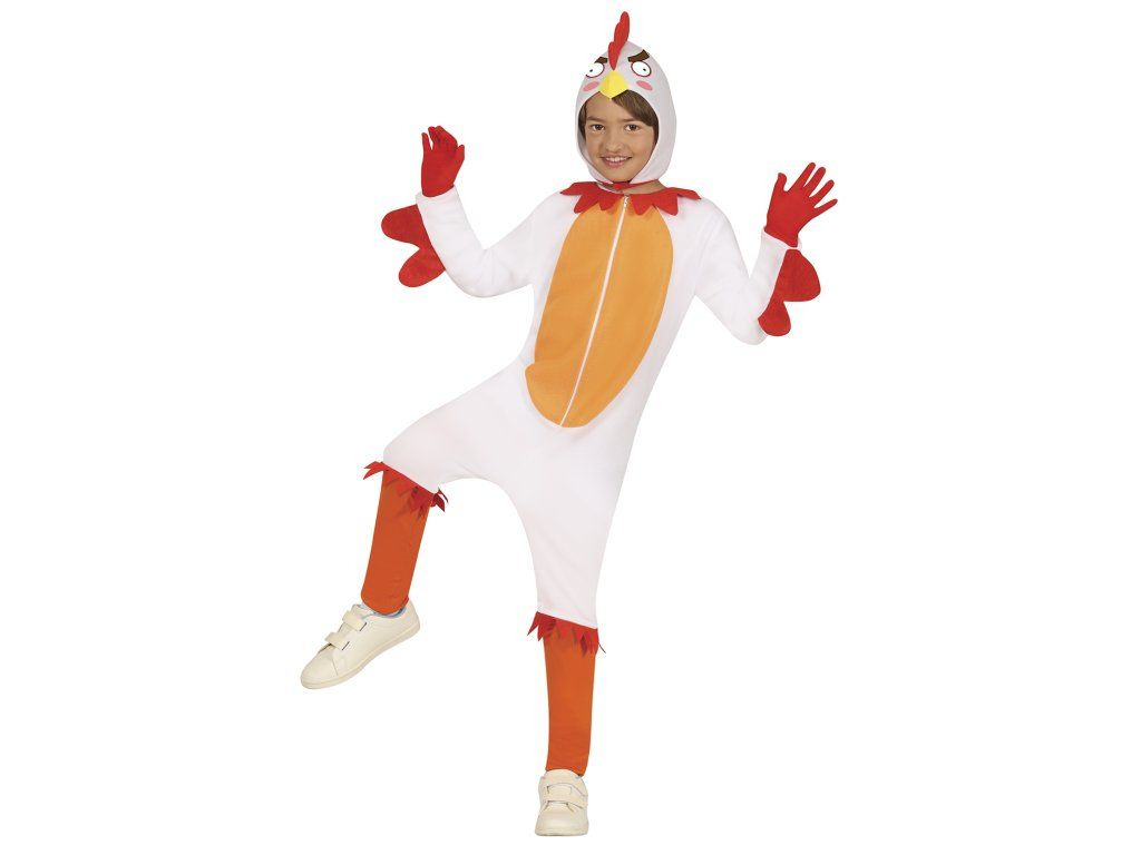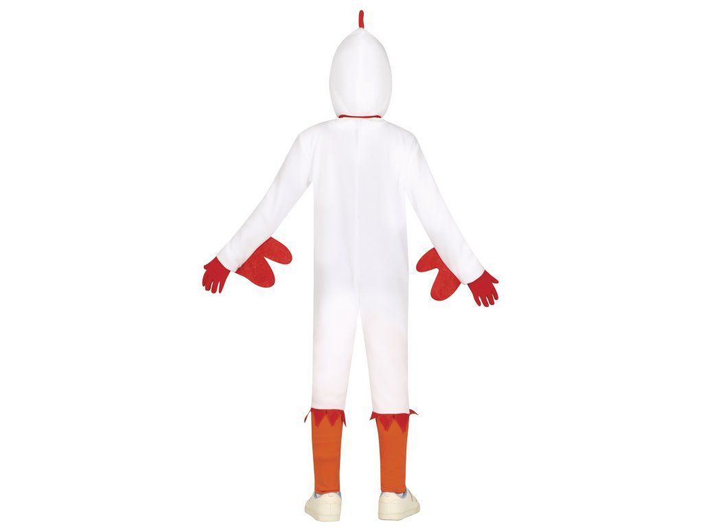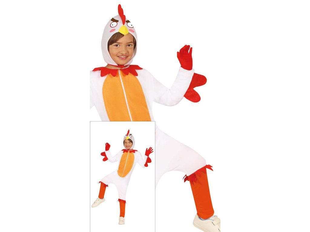 Acest costum include o salopetă albă, care oferă un aspect adorabil și elegant. Gluga este decorată cu detalii autentice, precum creasta roșie, ciocul și ochii cocoșului, completând perfect acest look jucăuș.