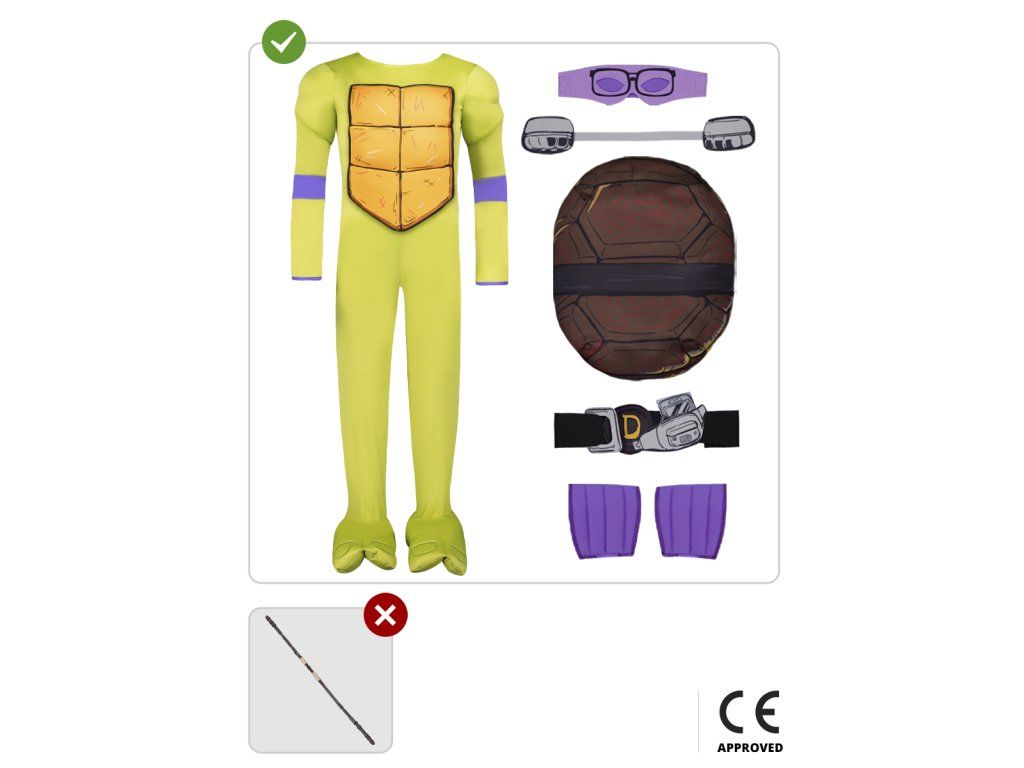 Vă prezentăm uimitorul costum Donatello pentru copii – inspirat din legendarele Teenage Mutant Ninja Turtles! Pregătiți-vă pentru o aventură în stil ninja cu acest costum fantastic, care conține tot ce aveți nevoie pentru a deveni un adevărat erou în verde: