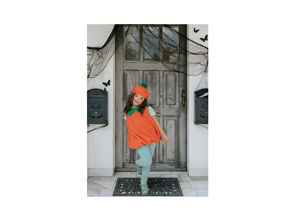Costumul perfect pentru micii iubitori ai toamnei și Halloweenului! Micuțul dumneavoastră se va transforma într-un dovlecel portocaliu și vesel și va deveni vedeta oricărei petreceri înfricoșătoare sau a carnavalului de toamnă. Costumul este conceput pentru confort și îmbrăcare ușoară. Este realizat dintr-un material ușor și moale, astfel încât copilul să se simtă confortabil și să se poată juca nestingherit.