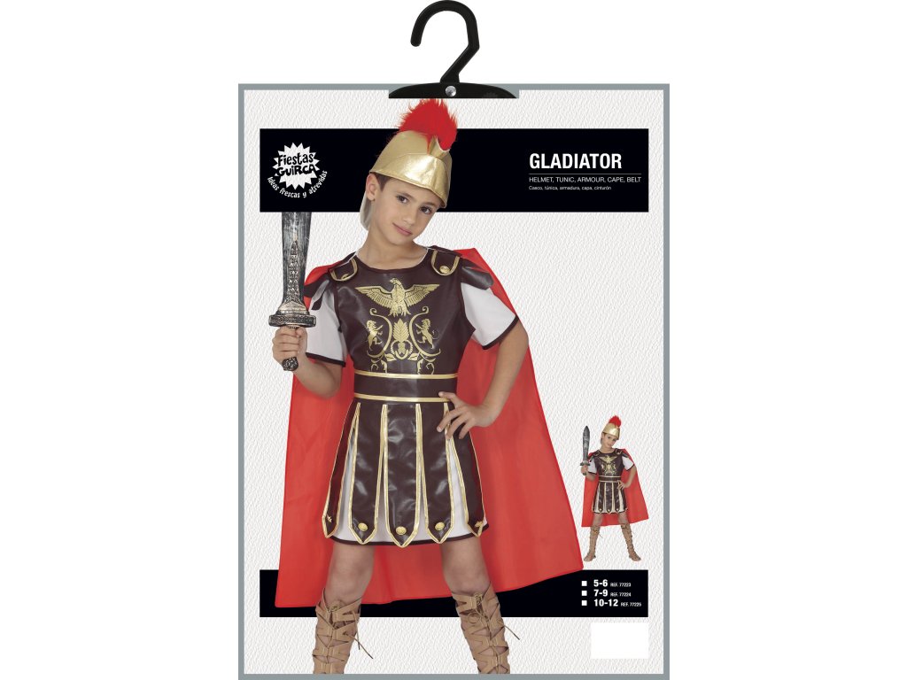 Copilul dumneavoastră se pregătește de carnaval sau la o petrecere pentru copii cu costume? Cumpărați acest costum original Gladiator, cu care sigur o să fie vedeta serii. Este potrivit pentru Halloween party, carnaval sau alte ocazii. Lăsăm folosirea lui în direcția și imaginația dumneavoastră.