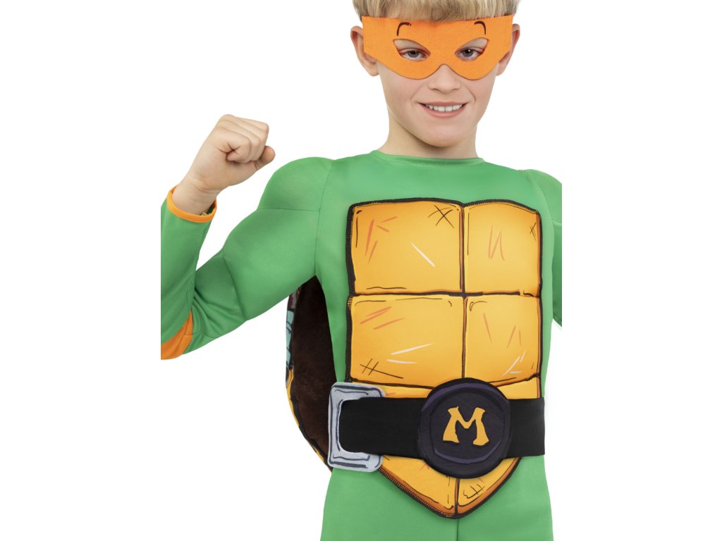Vă prezentăm uimitorul costum Michelangelo pentru copii, inspirat din celebrul Teenage Mutant Ninja Turtles! Pregătiți-vă pentru o porție zdravănă de distracție și aventură, deoarece acest costum îl va transforma pe micuțul D-voastră într-un adevărat erou al canalelor!