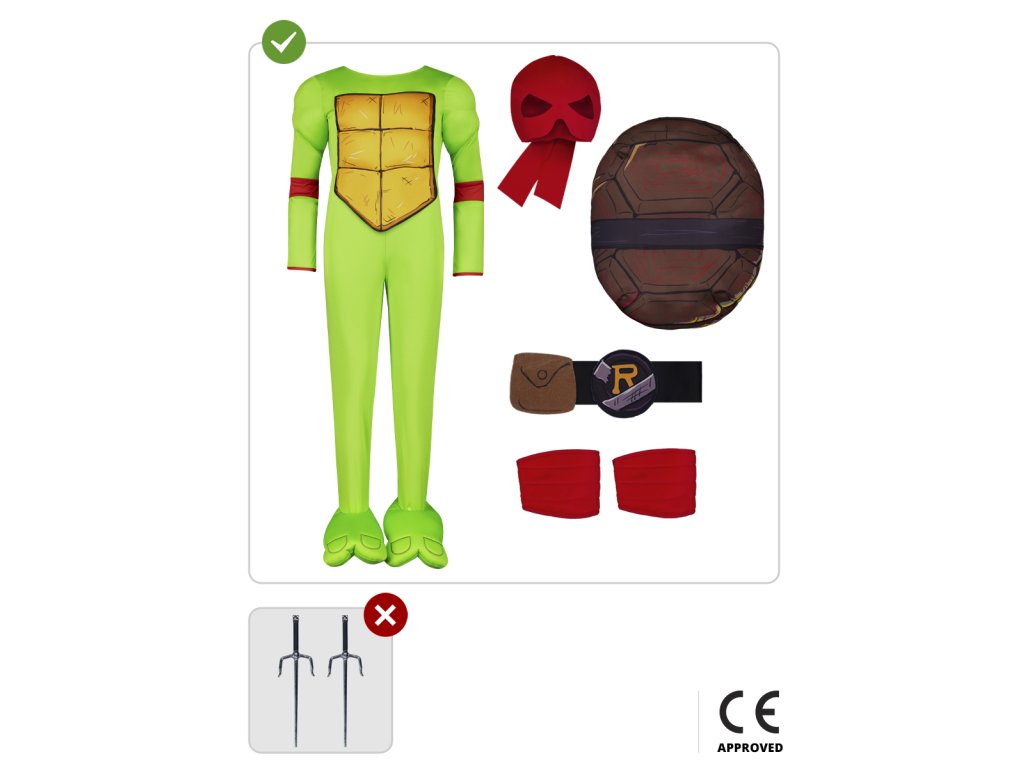 Vă prezentăm costumul lui Rafael pentru copii – direct de pe străzile New York-ului, micul dumneavoastră erou din Teenage Mutant Ninja Turtles este gata de acțiune! Acest costum este atât de cool încât chiar și Raphael ar fi invidios!