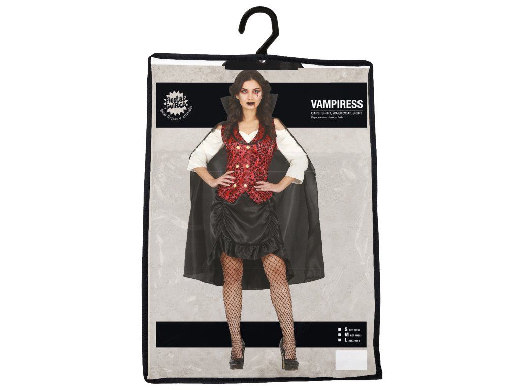 Deveniți vedeta oricărei petreceri de Halloween sau carnaval cu acest costum original de femei, Contesa vampir! Acest costum vesel și amuzant va transforma orice doamnă într-o contesă vampir elegantă, care îi va fermeca și pe cei mai înfricoșători monștri. Fie că mergeți la Halloween, carnaval sau o petrecere tematică, în acest costum veți fi de neuitat! Pregătiți-vă pentru o noapte plină de râsete, dans și distracție vampirică!
