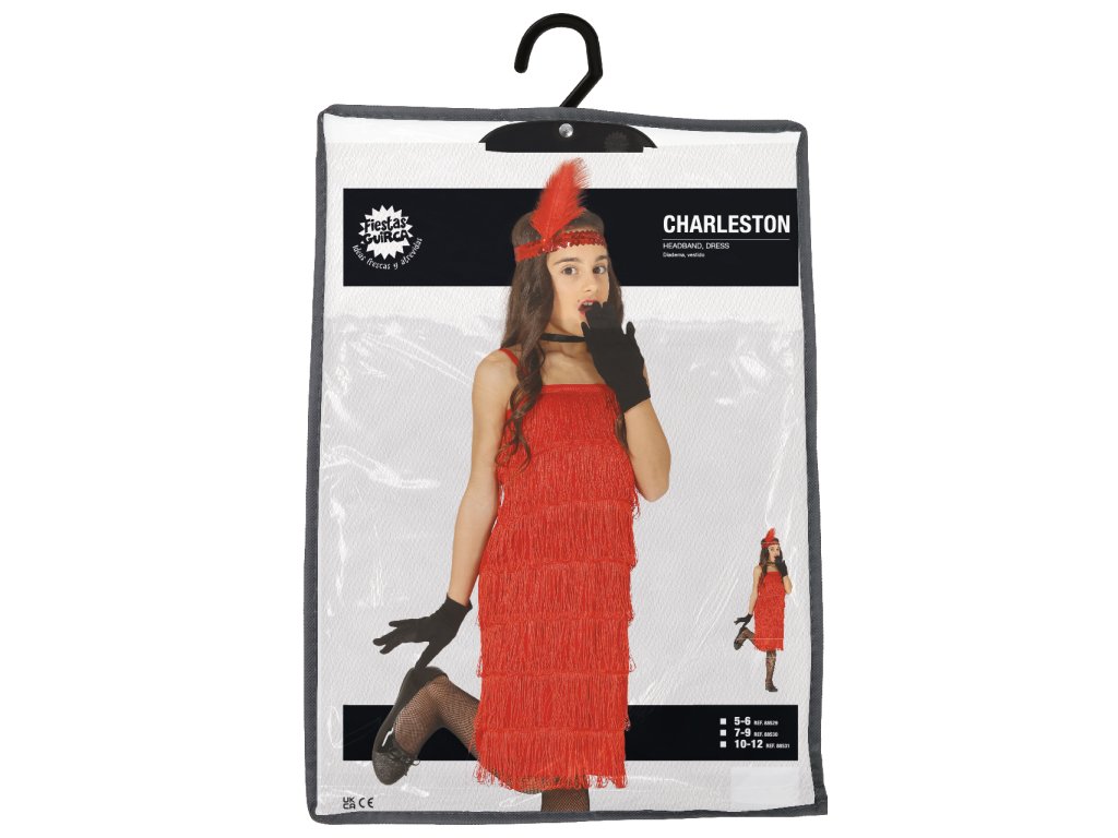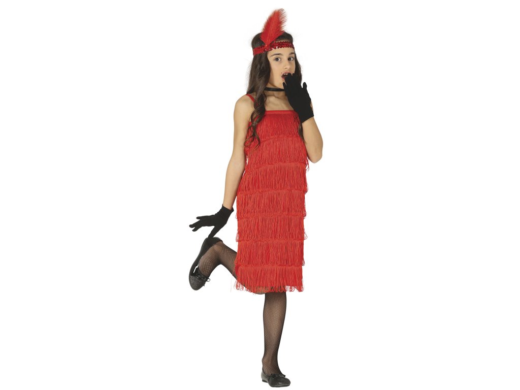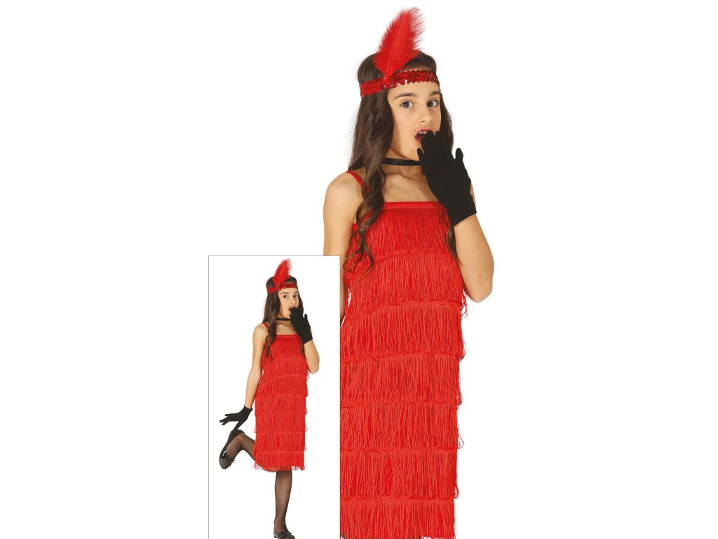 Costumul pentru fete Charleston, în nuanță roșie, este alegerea perfectă pentru petreceri tematice, carnavaluri sau spectacole școlare. Acest costum elegant este inspirat de moda anilor '20 și include o rochie decorată cu franjuri care se mișcă grațios în timpul dansului.