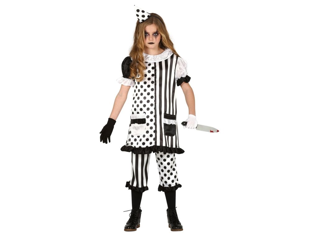 Costum pentru fete - Clovn rău alb-negru