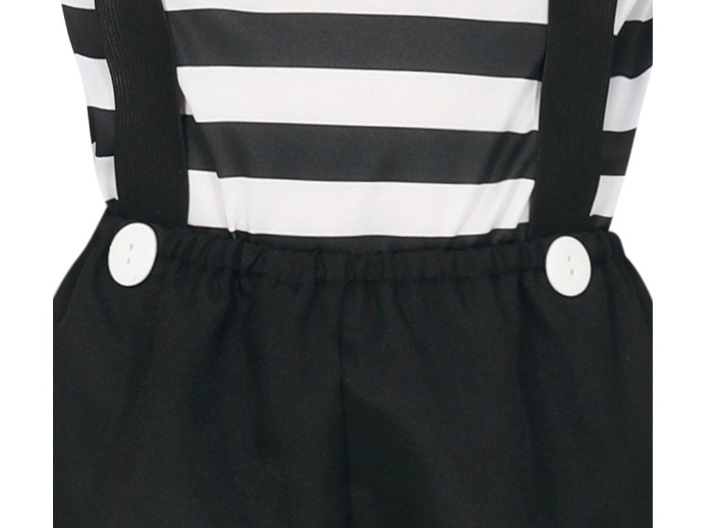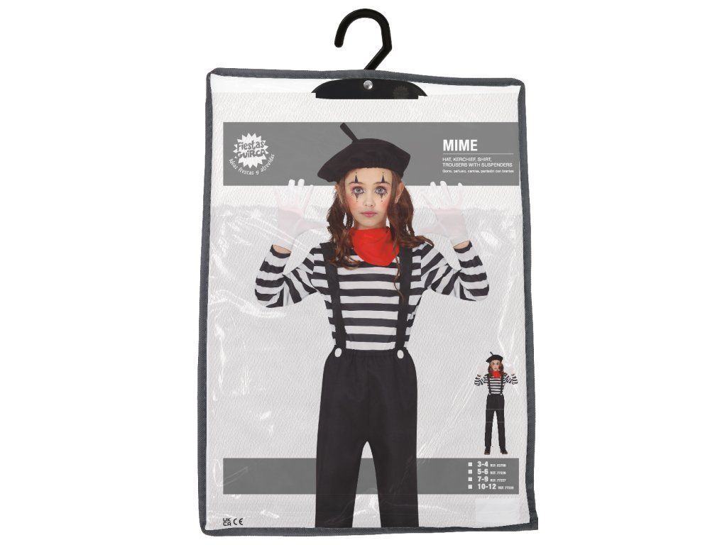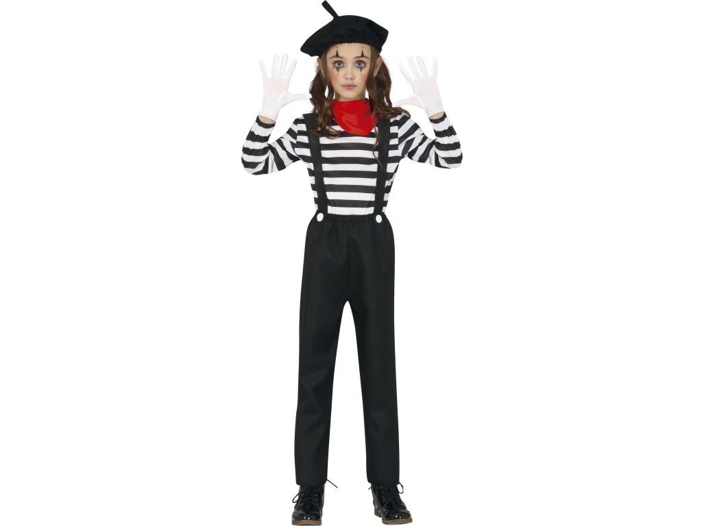 Costumul de Mim pentru fete este o alegere elegantă și unică pentru micile artiste care doresc să atragă atenția prin stilul lor și farmecul personal. Acest costum combină elemente iconice ale mimilor clasici, creând o ținută perfectă pentru carnavaluri, petreceri tematice sau Halloween.