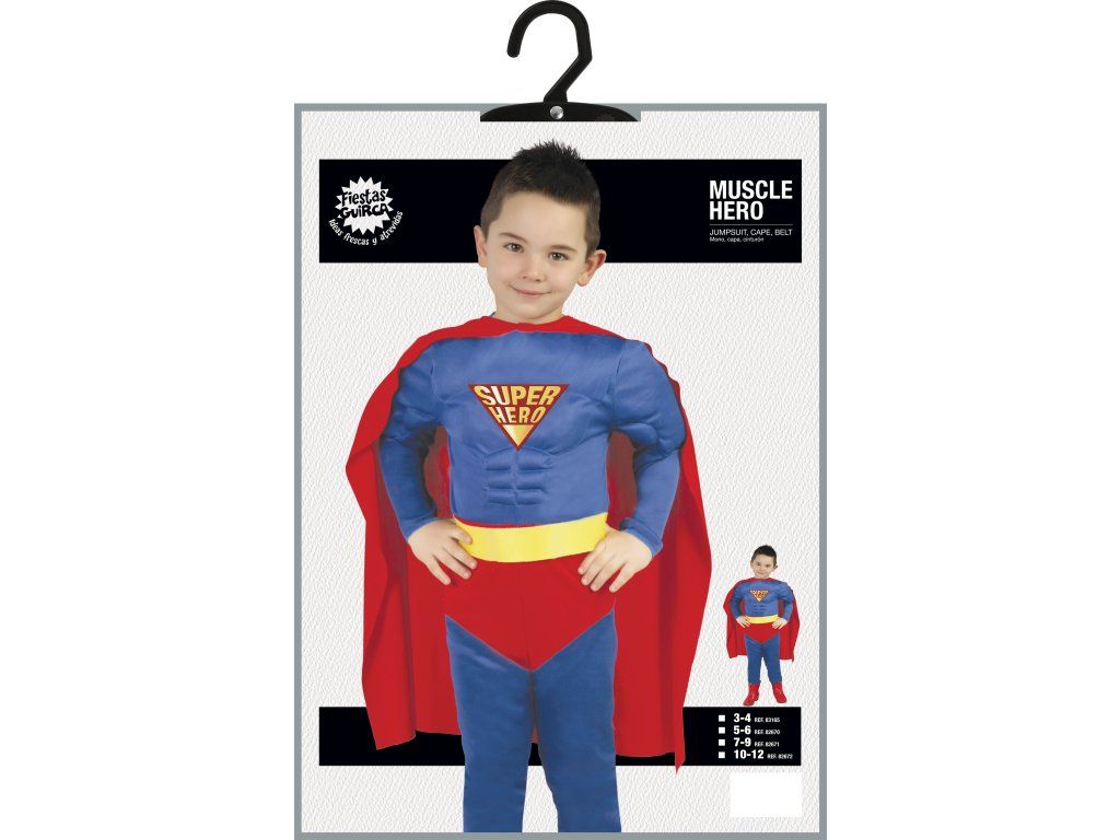 Fiecare băiat o să fie impresionat de costumul lui Superman, care este printre cei mai cunoscuţi eroi. Costumul este potrivit pentru petrecerea de aniversare, carnaval sau alte ocazii.