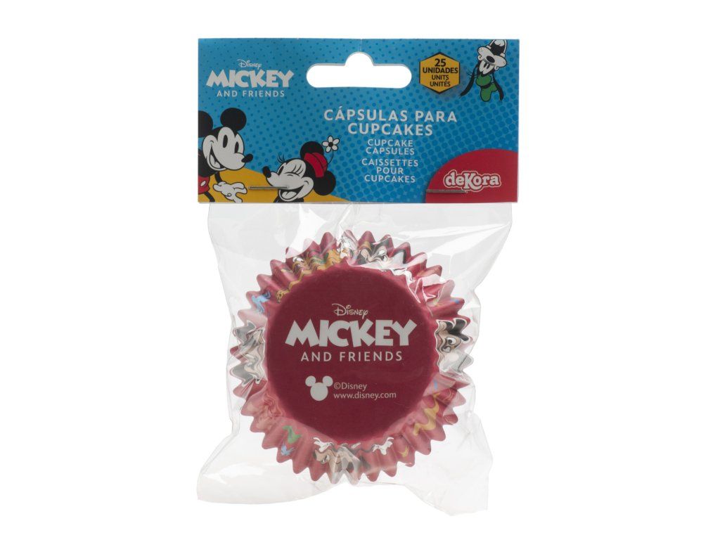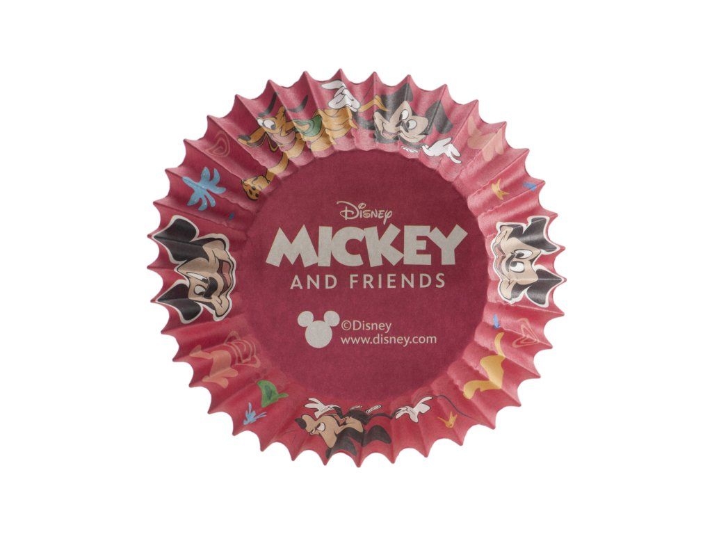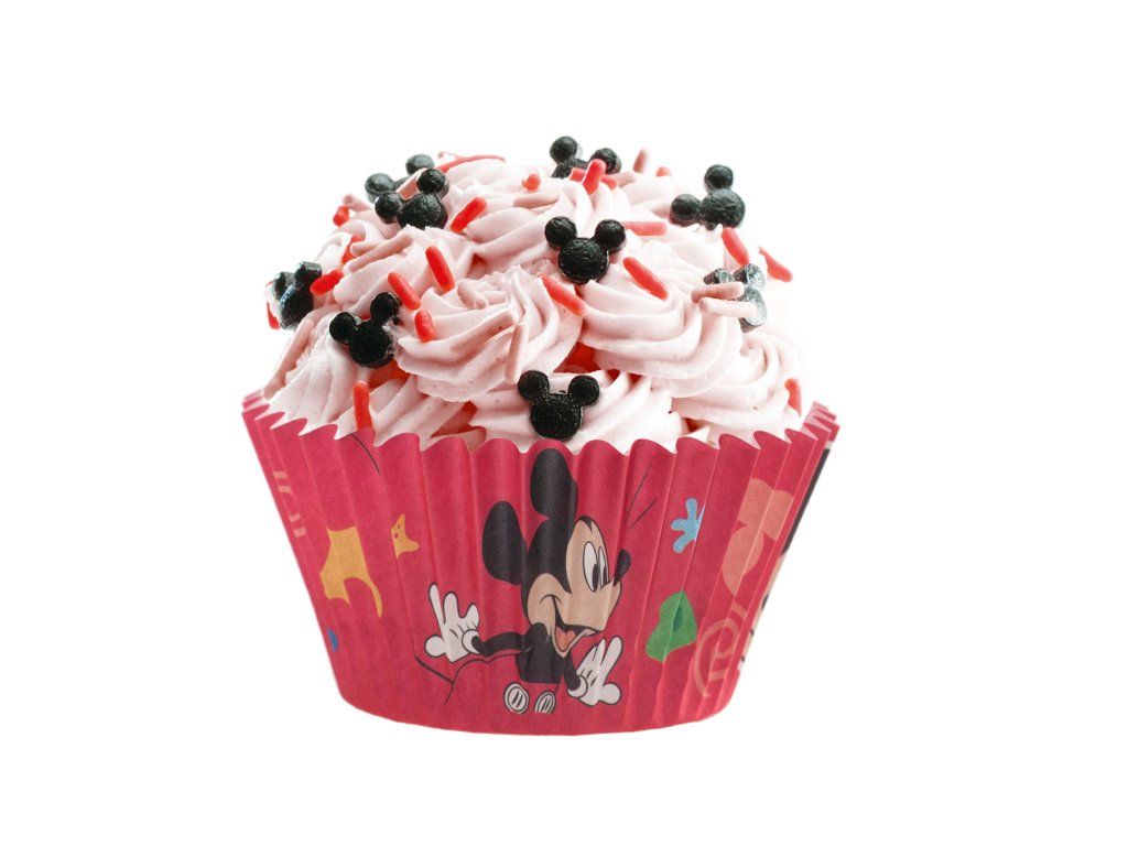 Coșulețe originale cu imprimeu Mickey sunt potrivite pentru a coace în ele brioșe, cupcakes, praline și alte produse de cofetărie care vor fi un plus drăguț pentru orice petrecere sau pentru zi de zi.