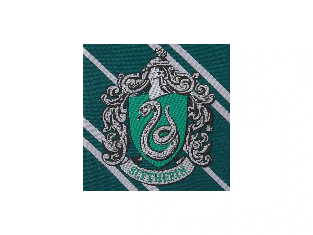 Cravata elegantă în culorile facultății de la Școala de vrăjitorie Hogwarts. Este inscripționată cu blazonul vicleanei facultăți Viperini și va fi un mare plus pentru costumul faniilor poveștilor Harry Potter.