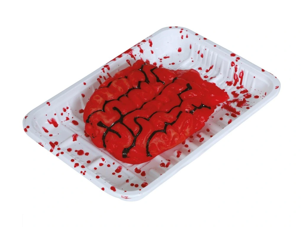Pregătiți-vă pentru o atmosferă înfricoșătoare cu acest creier însângerat pe tavă! Acest accesoriu este perfect pentru petreceri tematice horror, Halloween sau ca parte a unei decorațiuni la evenimentele de groază.