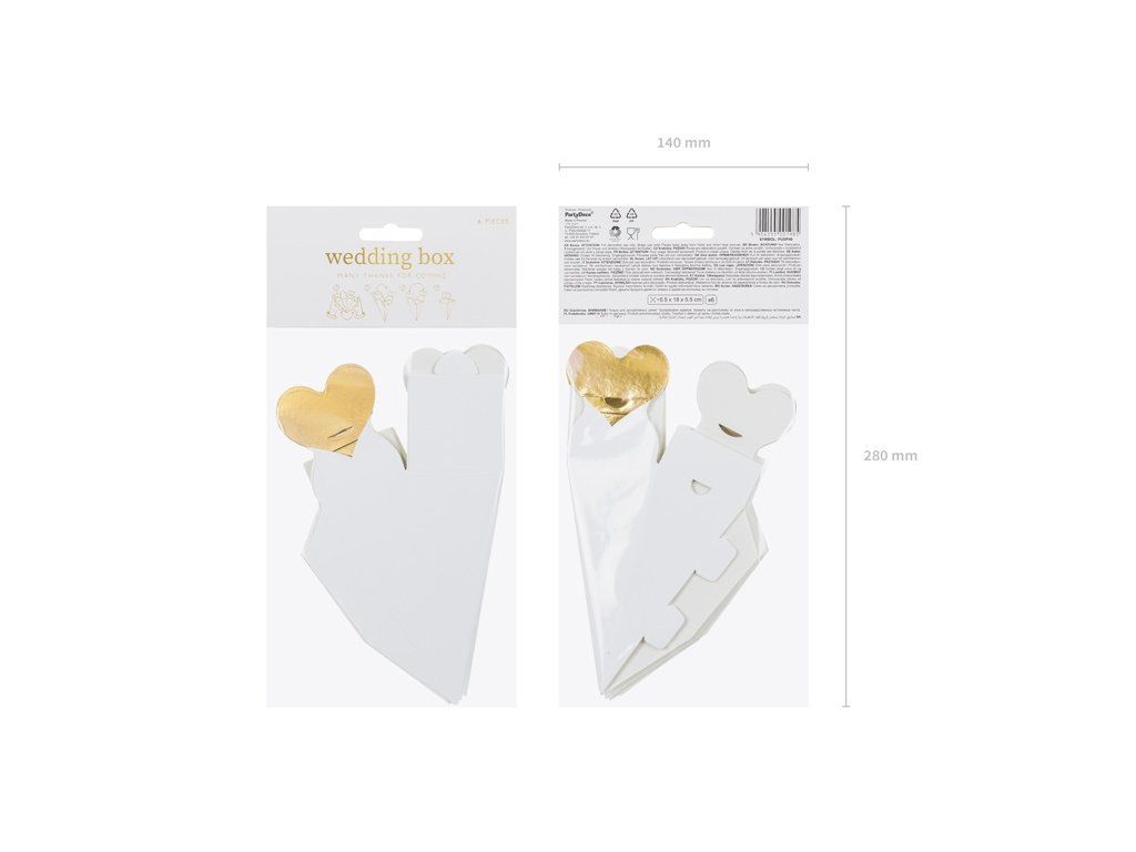 Această cutie albă cu o inimă, va fi minunată pentru a împacheta un mic cadou pentru invitații dvs. Cutiile pentru atenție pot servi, de asemenea, ca decorațiuni de masă excelente sau accesorii pentru masa de nuntă.
