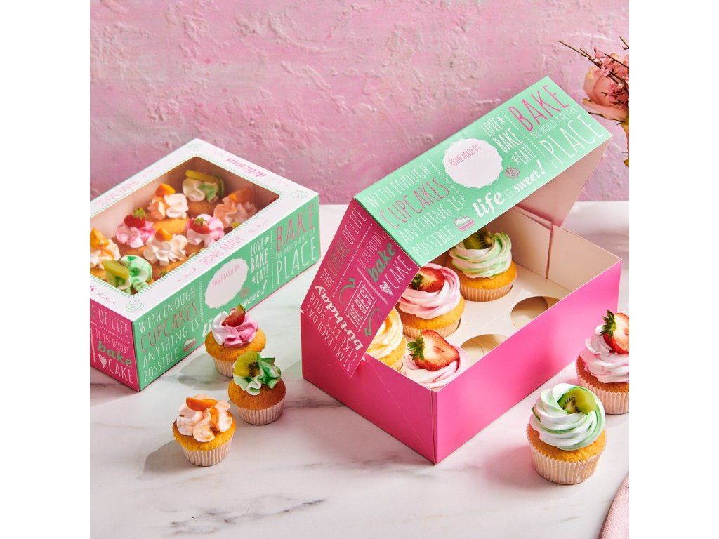 Pune cupcakes-urile sau brioșele într-o cutie îngrijită și oferă invitaților la o petrecere sau la nuntă. Cutia este adaptata pentru 15 mini briose sau 6 cupcakes.