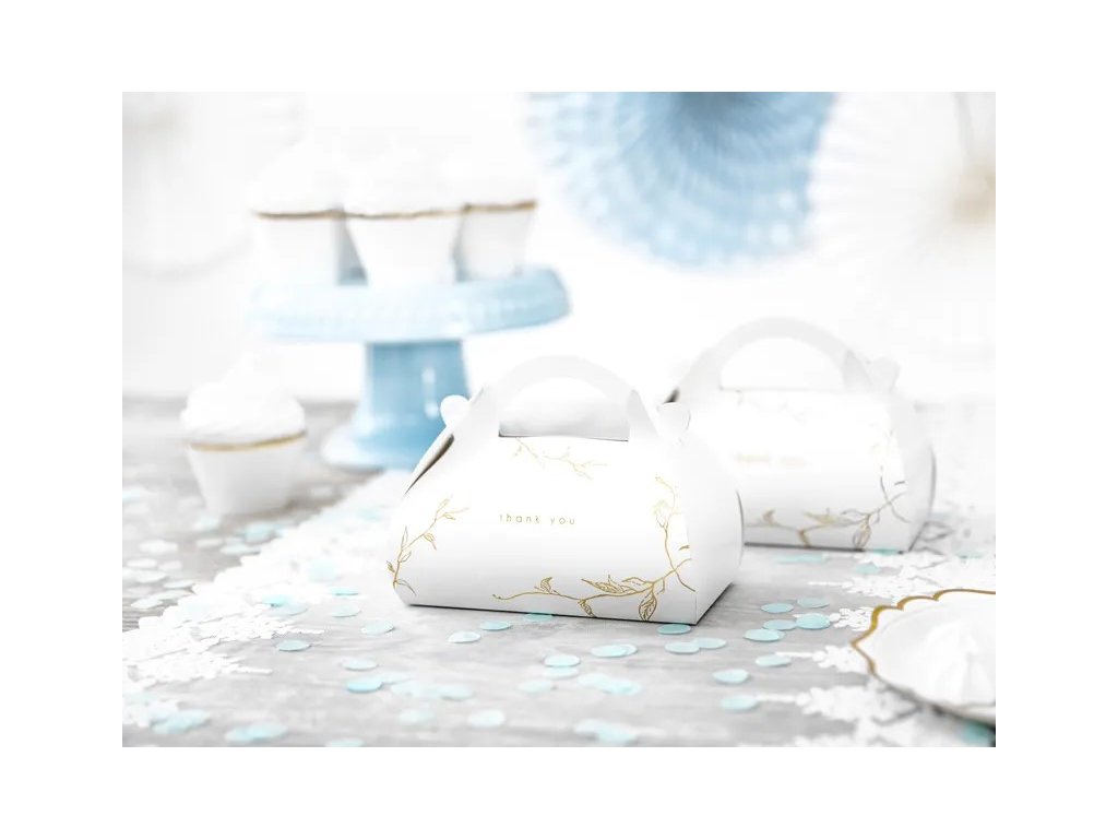 Cadourile de nuntă nu trebuie să vină doar într-o cutie albă clasică! Pregătiți prăjituri pentru invitații dvs. într-o cutie decorativă elegantă, care să atragă atenția de la prima vedere! Cutia este concepută pentru a depozita și transporta în siguranță prăjituri, deserturi, patiserie și alte alimente.