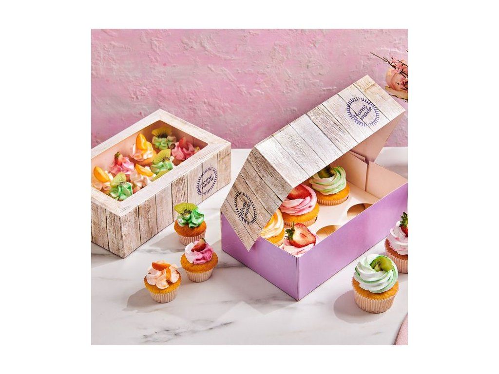 Pune cupcakes sau brioșe într-o cutie îngrijită și oferă invitaților la o petrecere sau la nuntă. Cutia este adaptata pentru 6 cupcakes sau 6 briose.