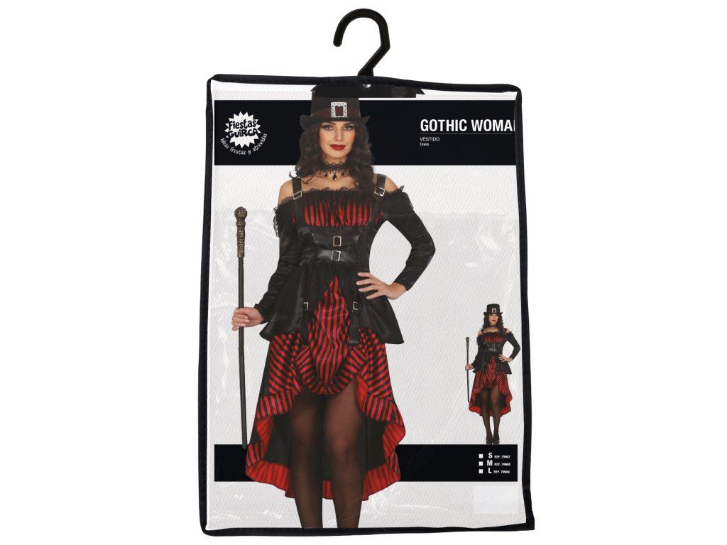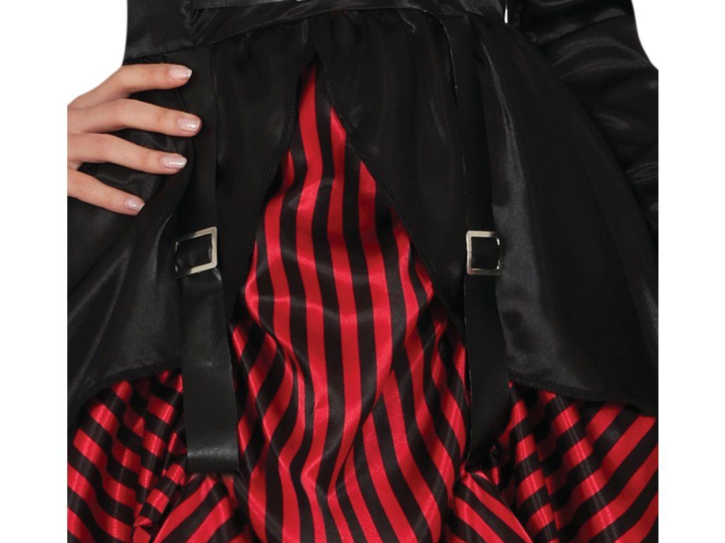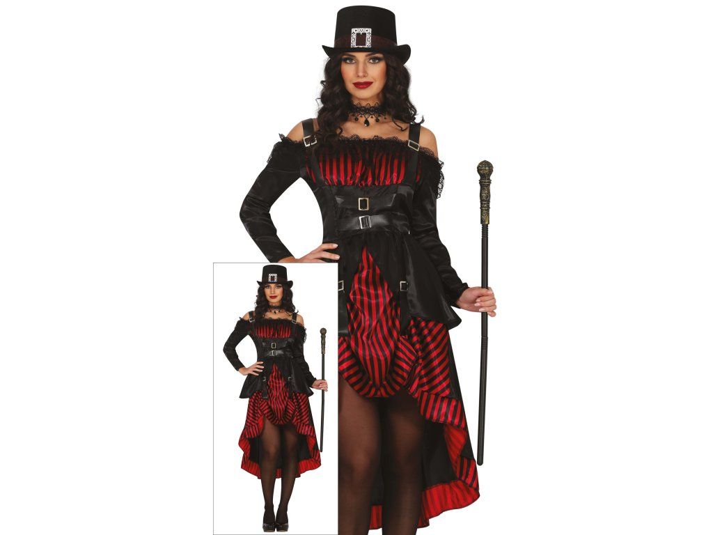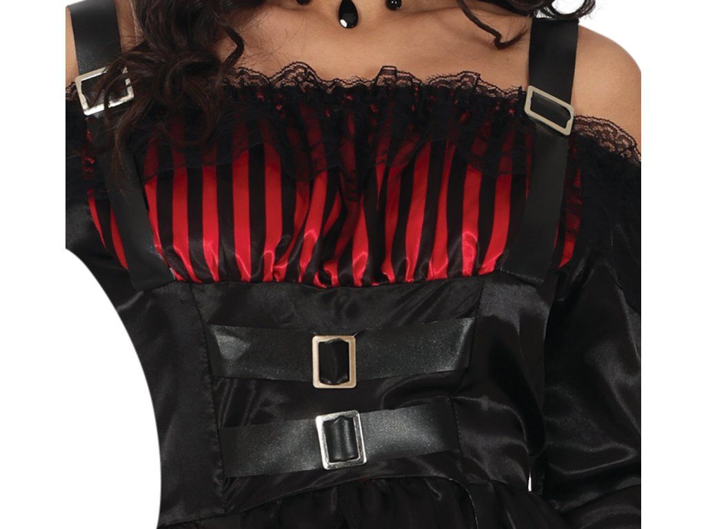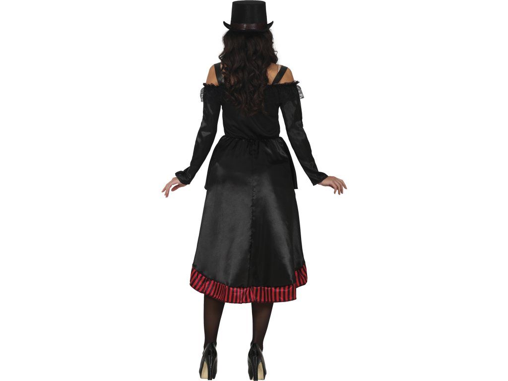 Costumul include: o rochie neagră dramatică cu detalii de dantelă pe care chiar și contesa Dracula le-ar invidia. Datorită croielii precise și materialelor de înaltă calitate, te vei simți confortabil chiar și în timpul celei mai sălbatice petreceri de Halloween. Pălăria și bastonul nu sunt incluse.