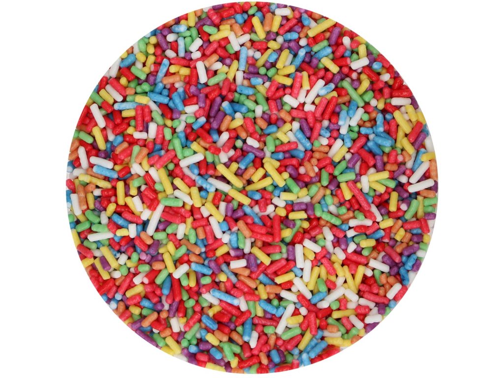 Acest decor comestibil tradițional și popular, cunoscut sub numele de orez colorat din zahăr, este ideal pentru decorarea deserturilor, cake pops, donuts și prăjiturilor cu cremă.
