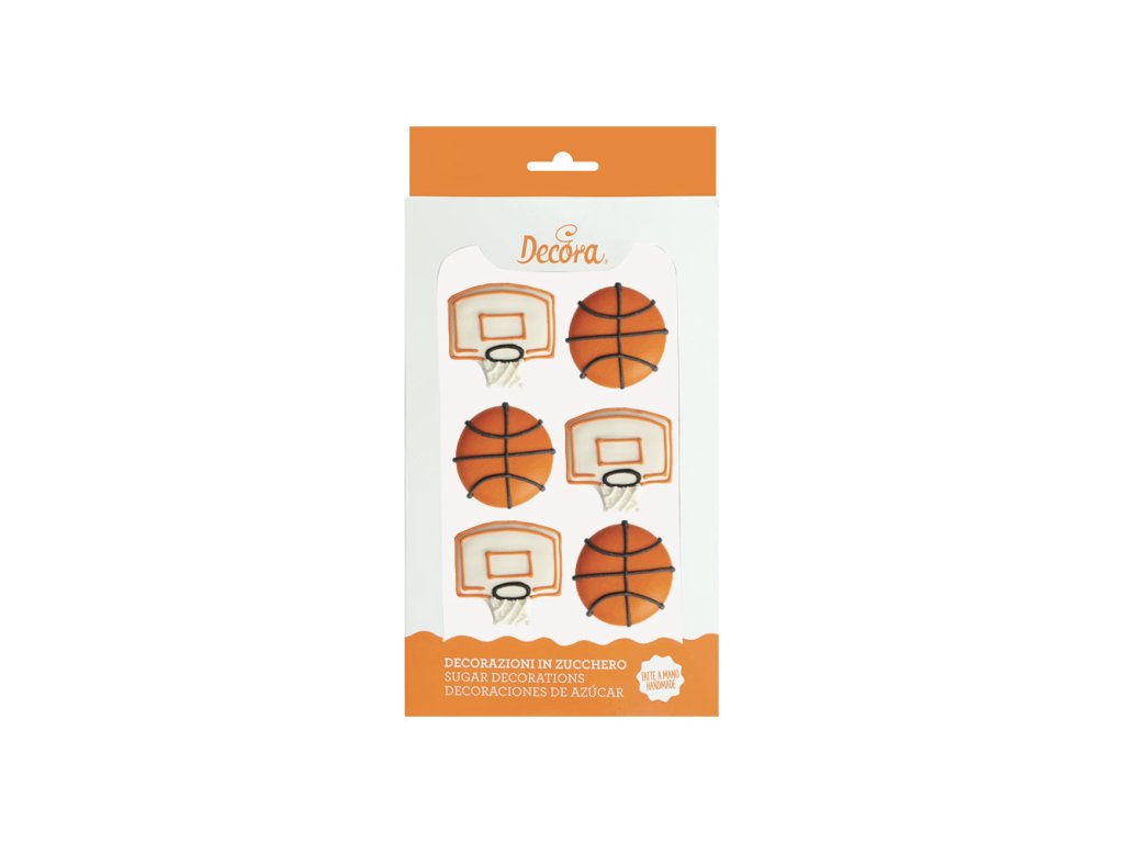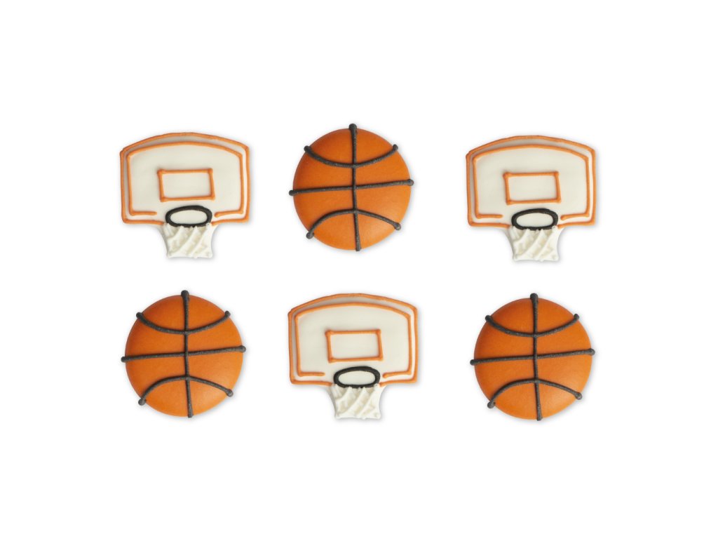 Poți decora în mod jucăuș cupcakes, tartele, brioșe și alte deserturi sau dulciuri destinate fanilor sau baschetbalistilor pasionați cu decorațiuni de zahăr în designul baschetului. Excelent pentru prăjituri acoperite cu portocaliu, negru sau alb. Setul include decorațiuni cu mingi comestibile și un coș de baschet.