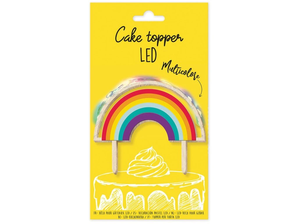 Decor din lemn pentru tort LED - Curcubeu