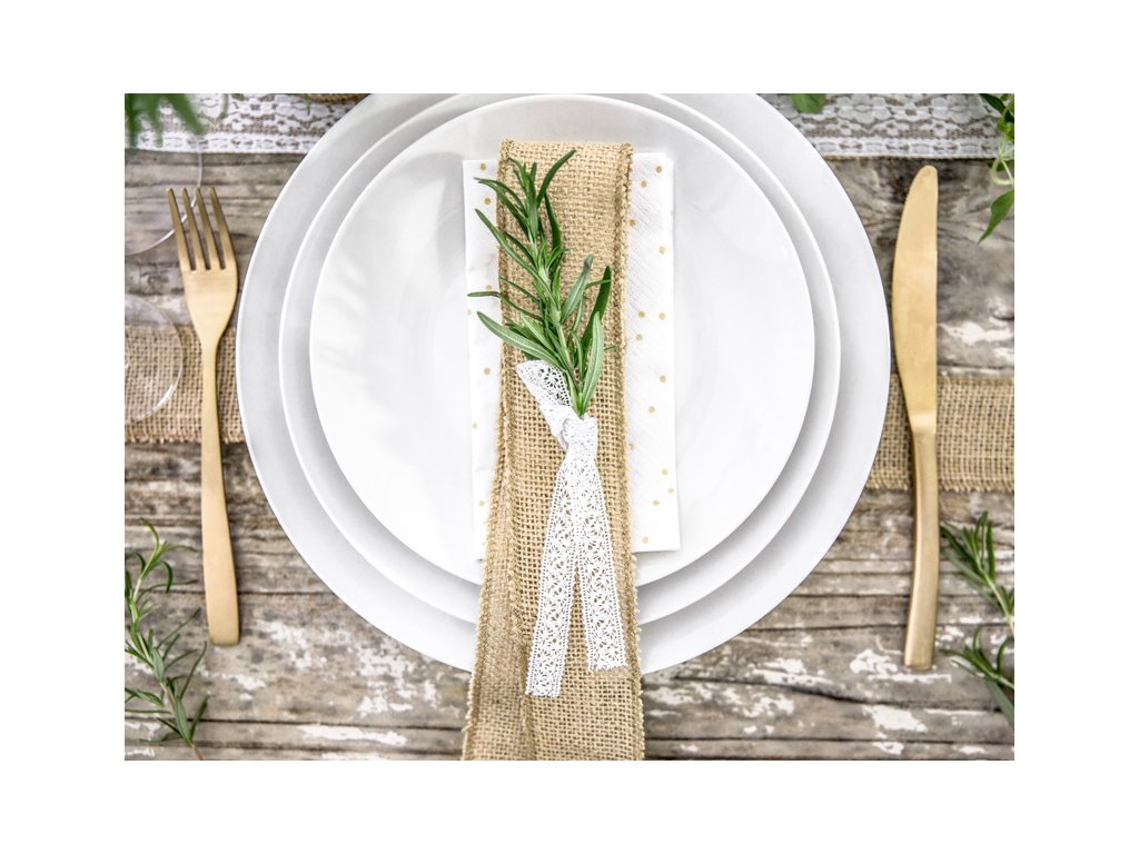 Fiecare sărbătoare trebuie să aibă decorațiuni și aranjamente originale pentru masă. Decorațiunea pentru masă - iuta este potrivită pentru orice party, petrecere aniversară sau altă ocazie de sărbătoare. Această iută decorativă este perfectă pentru decorarea unei săli de nuntă, de ex. aranjarea mesei sau a lumânărilor.