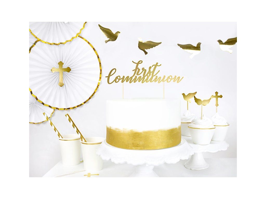 Şi un tort simplu poate arăta grozav datorită acestei decoraţiuni pentru tort. Este potrivită pentru sărbătorirea Primei Împărtăşanii.