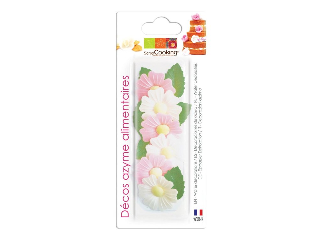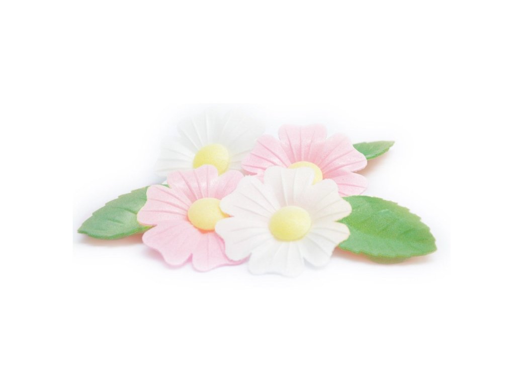 Decorațiuni comestibile pentru tort - Flori albe, roz 12 buc