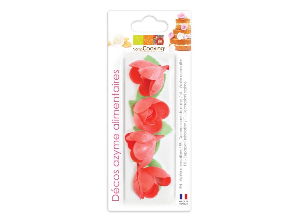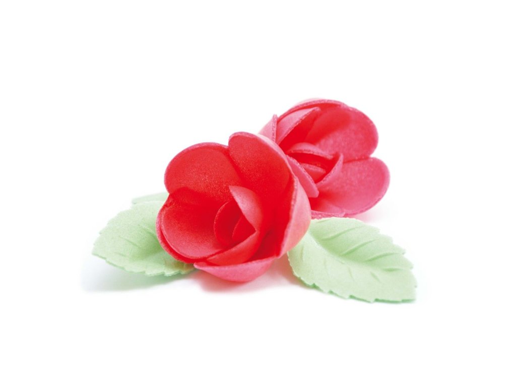 Decorațiuni comestibile pentru tort - Flori roșii și frunze 10 buc