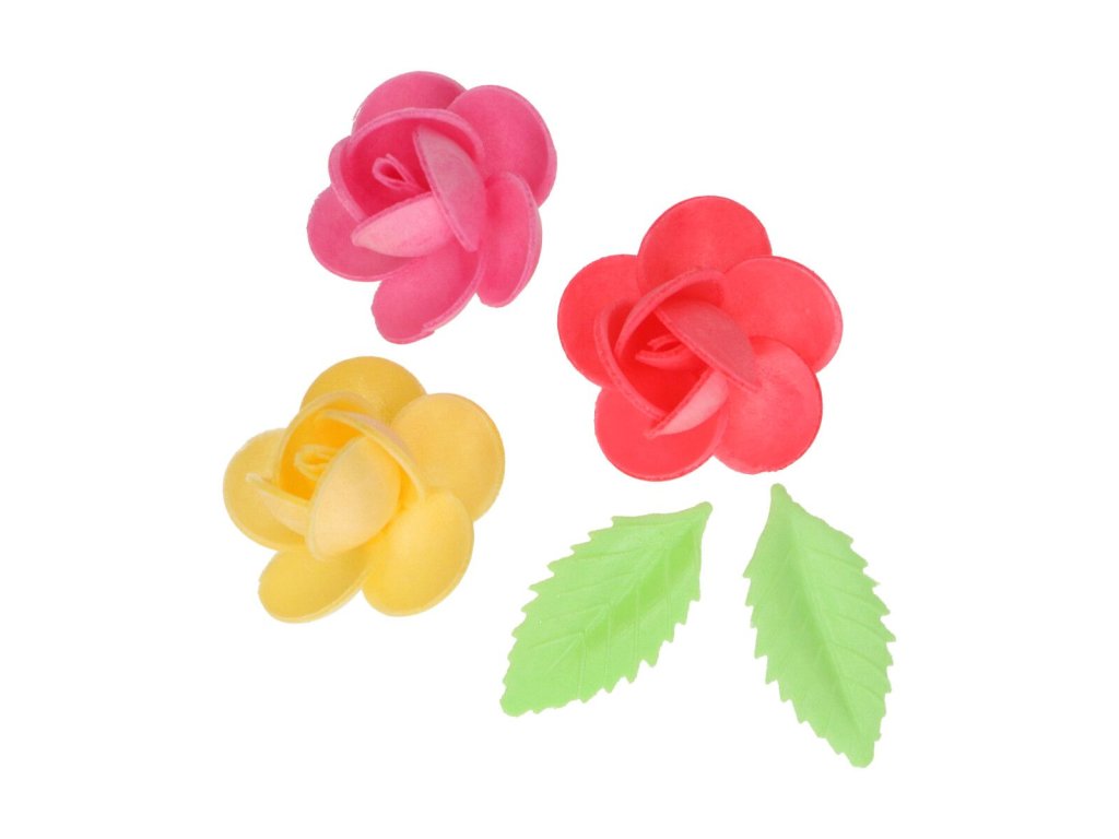 Adăugați un plus de eleganță torturilor și deserturilor D-voastră cu aceste flori comestibile. Aceste flori minunate sunt realizate cu atenție din foi comestibile și coloranți alimentari, făcându-le un accesoriu sigur și frumos pentru creațiile D-voastră dulci.
