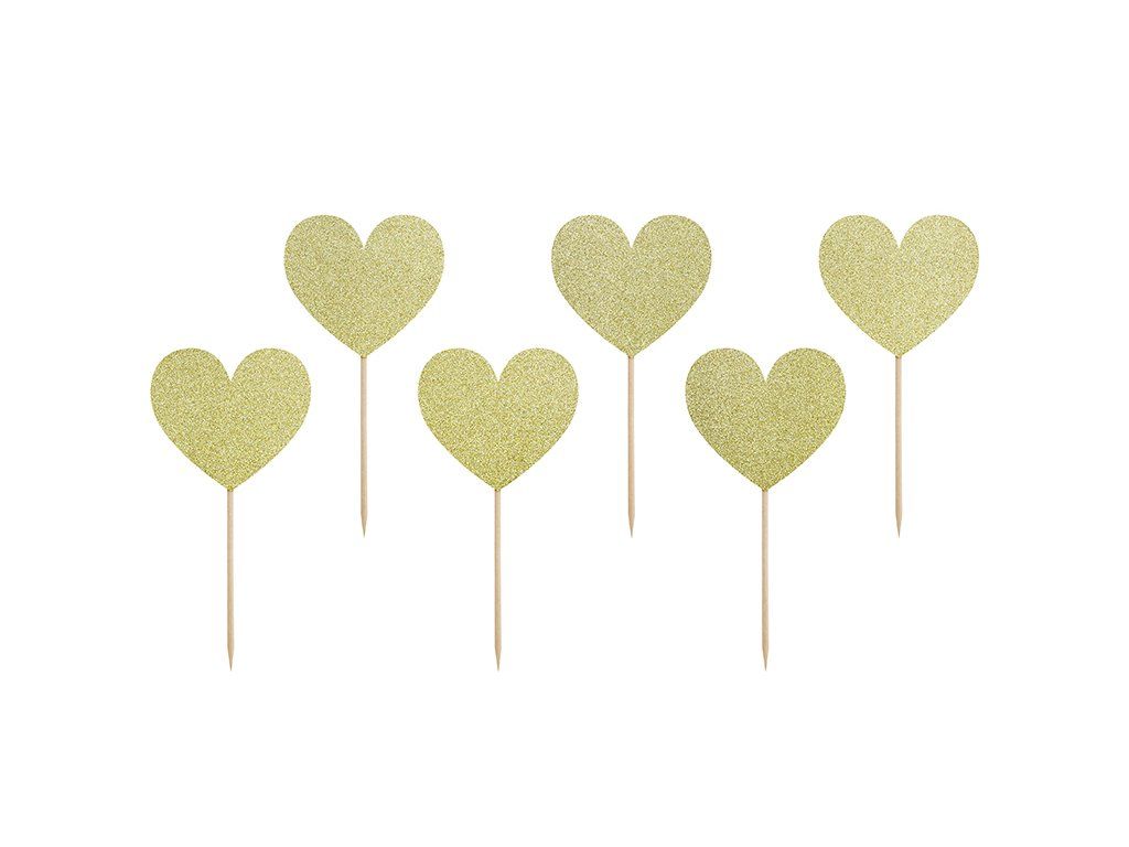 Decorațiuni cupcake - inimioare auri 6 buc
