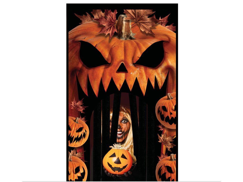 Organizați o petrecere înfricoșătoare de Halloween? Creați o atmosferă de Halloween imbatabilă cu o varietate de decorațiuni înfricoșătoare, cum ar fi această decorațiune pentru ușă - dovleci.