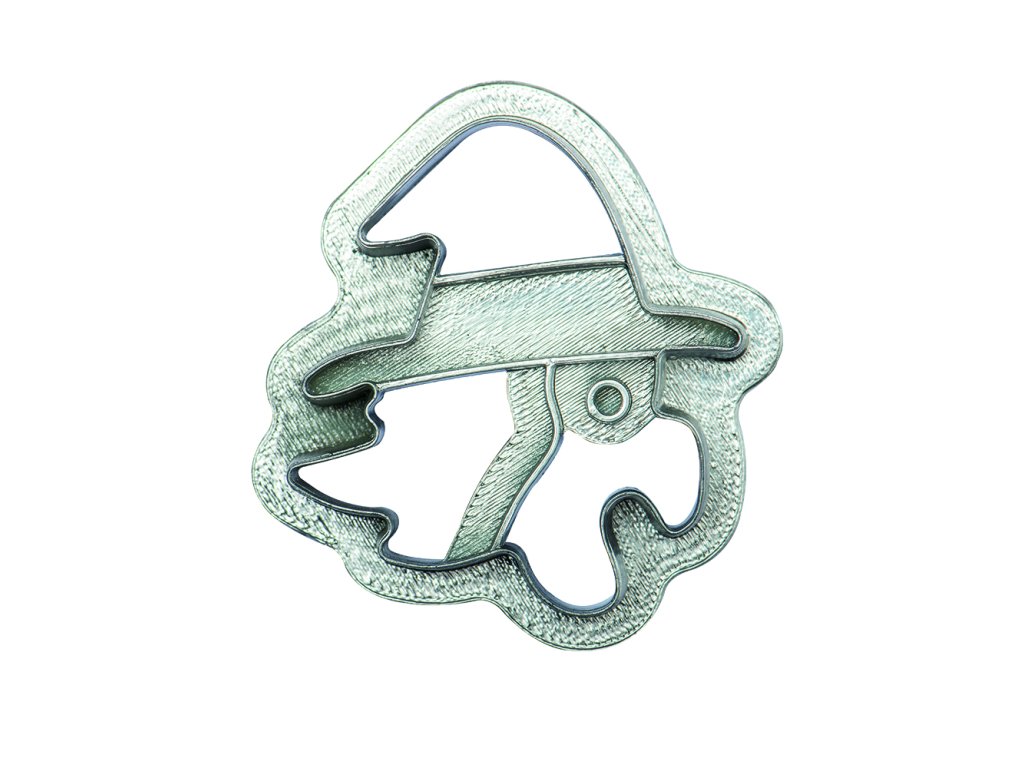 Decupator în formă de vrăjitoare este din plastic. Produsele sale vor decora perfect torturile și deserturile tematice. Sunt potrivite nu numai pentru decuparea din fondant și marțipan, ci și din turtă dulce, prăjitură sau aluat pentru fursecuri.