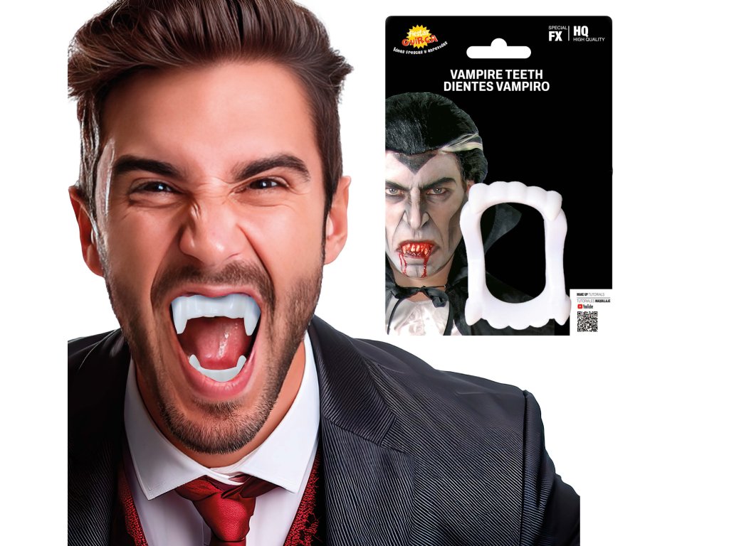 Acești dinți de vampir sunt un accesoriu excelent pentru orice mască de carnaval și costum de monstru sau vampir. Sunt potriviți în special pentru o petrecere de Halloween sau carnaval.