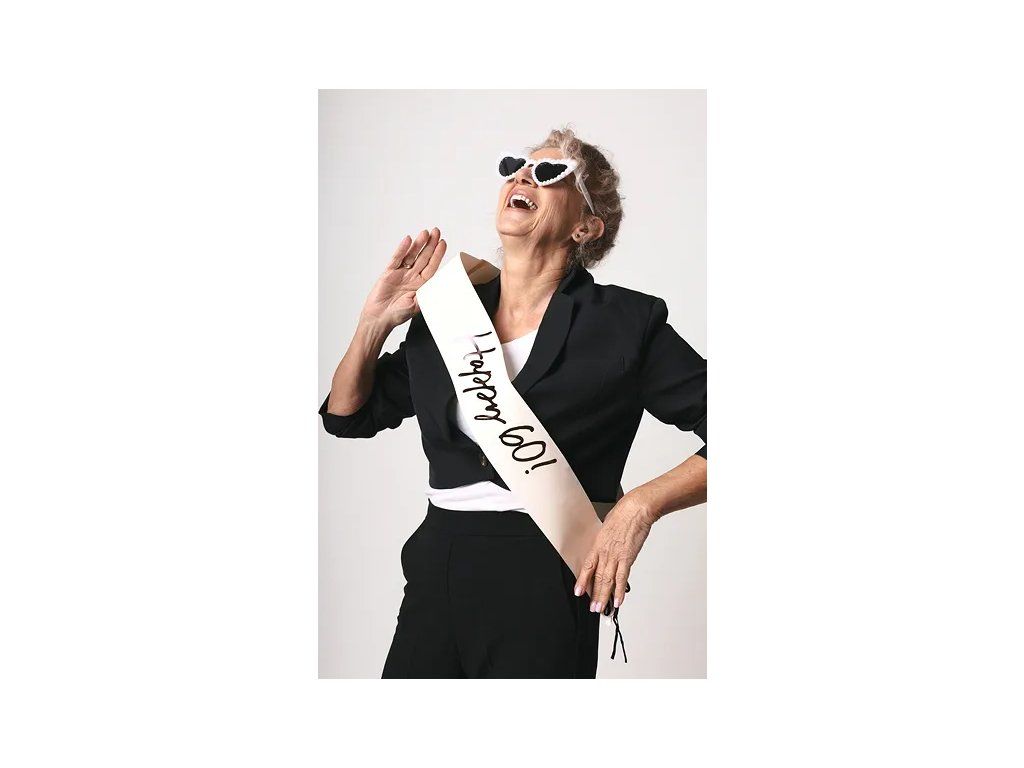 Se apropie vârsta de 60 de ani? Atunci e nevoie de un adevărat spectacol! Cu această eșarfă inscripționată cu "Happy 60", sărbătoritul va stârni invidia tuturor pentru stilul și simțul său al umorului. Doar să o arunci peste umăr și devine imediat clar cine este regele sau regina serii! Baloane colorate, râsete, tort și poate chiar câteva mișcări de dans – exact așa ar trebui să arate o petrecere de neuitat. Surprindeți sărbătoritul cu această eșarfă și pregătiți-vă pentru valuri de felicitări, îmbrățișări și voie bună. Până la urmă, șaizeci este doar un număr – dar cu această eșarfă, distracția va fi garantată!