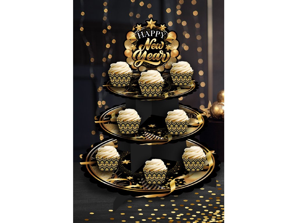 Sărbătorește sosirea Anului Nou cu stil și practicitate! Această veselă etajeră din hârtie cu trei niveluri este ajutorul ideal pentru orice petrecere. Cu dimensiunile de 40 x 30 cm, oferă suficient spațiu pentru prăjituri, brioșe, aperitive sau alte bunătăți care vor lumina orice masă.