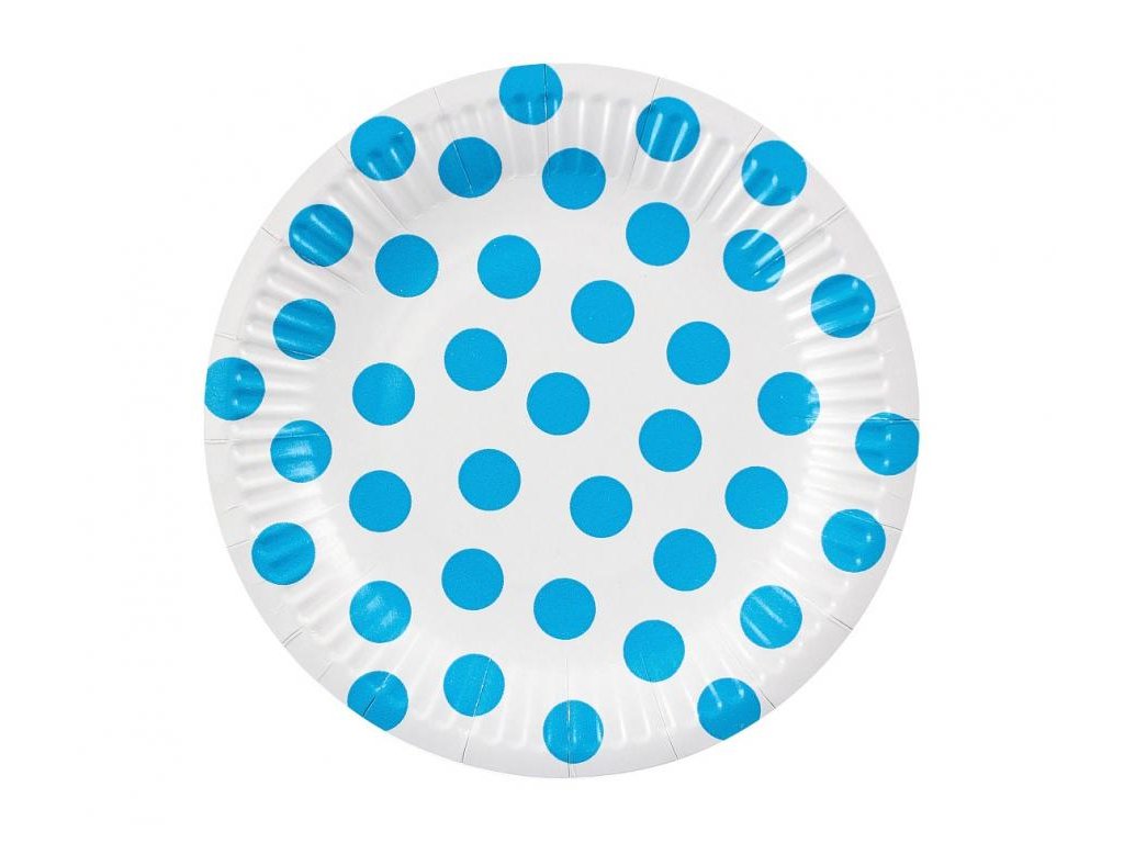 Farfurii de hârtie - Albe cu buline albastre 18 cm, 6 buc.