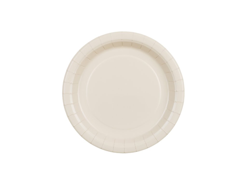 Farfuriile simple, rotunde, din hârtie de culoare bej sunt un accesoriu practic pentru diverse petreceri, evenimente, picnicuri sau întâlniri de familie. Datorită designului lor universal, se combină ușor cu diferite tematici de decor. Farfuriile sunt ideale pentru servirea prăjiturilor, deserturilor, gustărilor sau preparatelor mai mici și, în același timp, facilitează curățenia după petrecere.