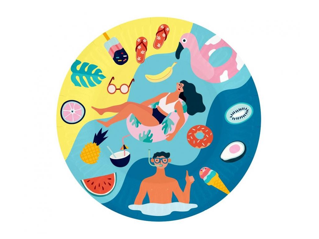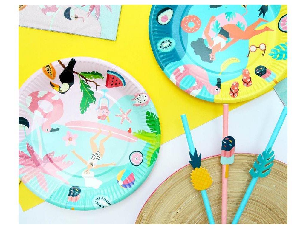 Adăugați un strop de vară petrecerii D-voastră cu aceste farfurii de hârtie minunate, decorate cu un motiv de vară! Aceste farfurii elegante sunt accesoriul ideal pentru orice petrecere, unde doriți să creați o atmosferă de neuitat, plină de soare și distracție.