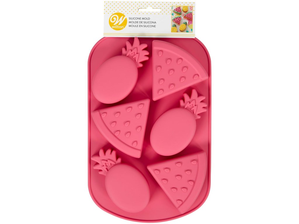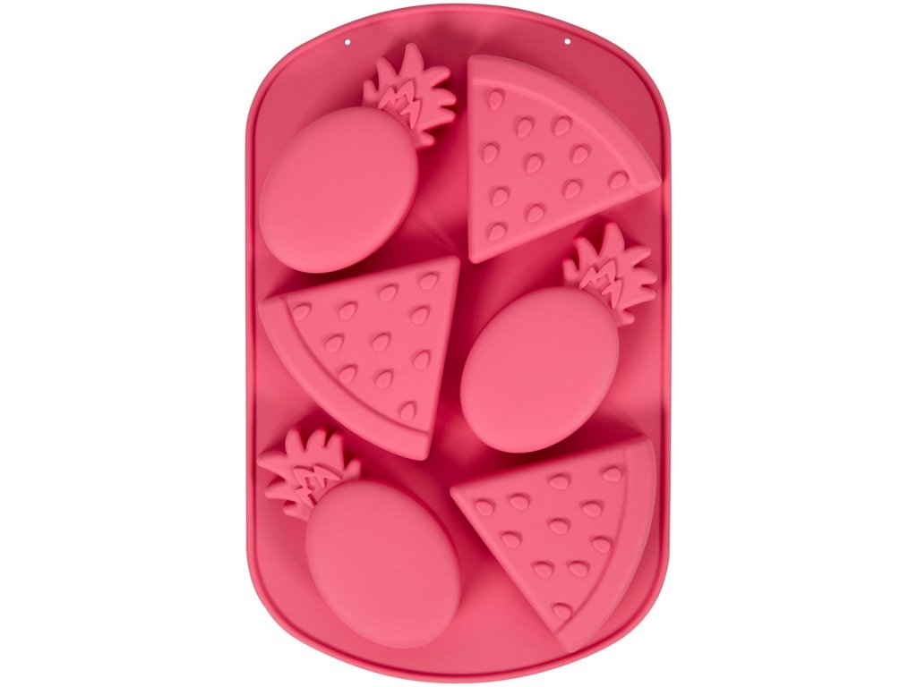 Această formă din silicon pentru dulciuri este perfectă pentru o petrecere tropicală! Cu ajutorul acestei forme, poți pregăti figurine din ciocolată topită în forme de pepene și ananas. Aceste figurine vor arăta minunat pe torturi tropicale, brioșe și alte delicii.