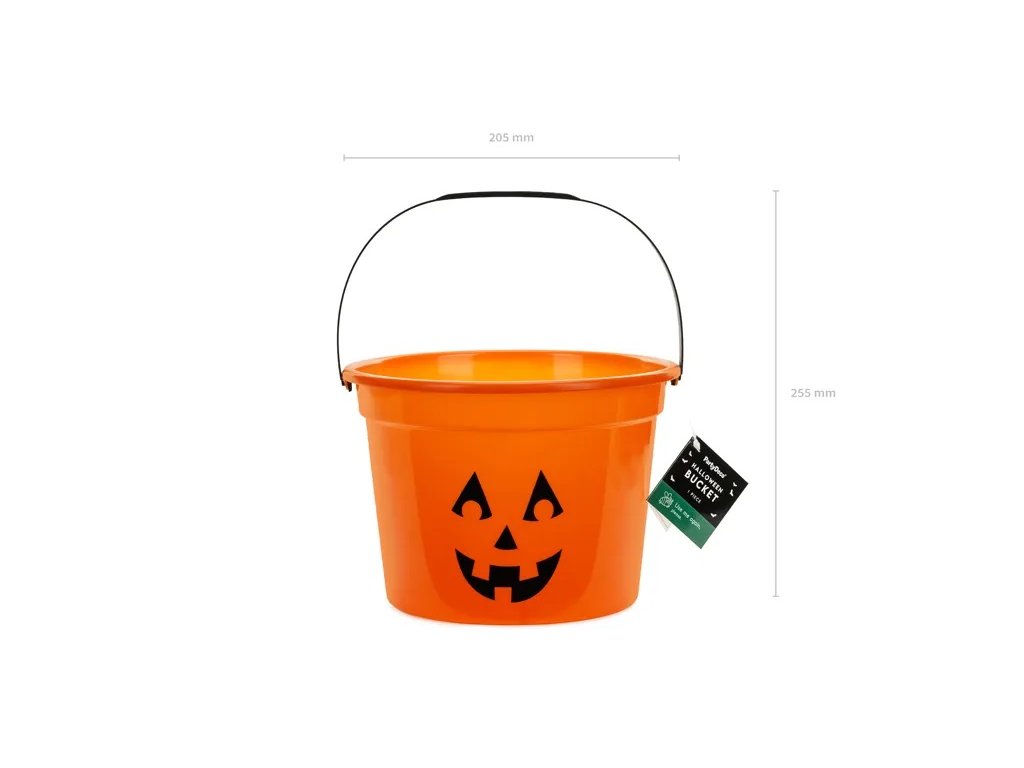 Pregătește-te pentru o aventură adevărată a dulciurilor! Cu această găleată zâmbitoare cu motiv de dovleac, toate bunătățile de Halloween vor fi doar ale tale. Tot ce trebuie să faci este să o apuci de mânerul rezistent și să pornești la vânătoare de bomboane, ciocolată sau surprize înfricoșătoare. Designul vesel te va face vedeta oricărei petreceri de Halloween, iar datorită dimensiunilor de 20,5 x 15 cm vei putea aduna o cantitate impresionantă de dulciuri. Umple-o până la refuz și bucură-te din plin de Halloween!