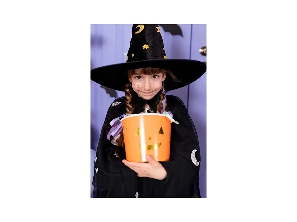 Pur și simplu puneți mica surpriză dulce în găletușa practică cu tematică de Halloween. Găletușa este potrivită pentru a transporta dulciuri în timpul serii de Halloween.
