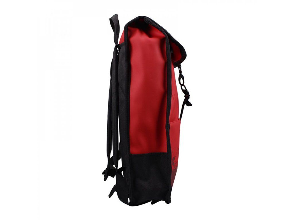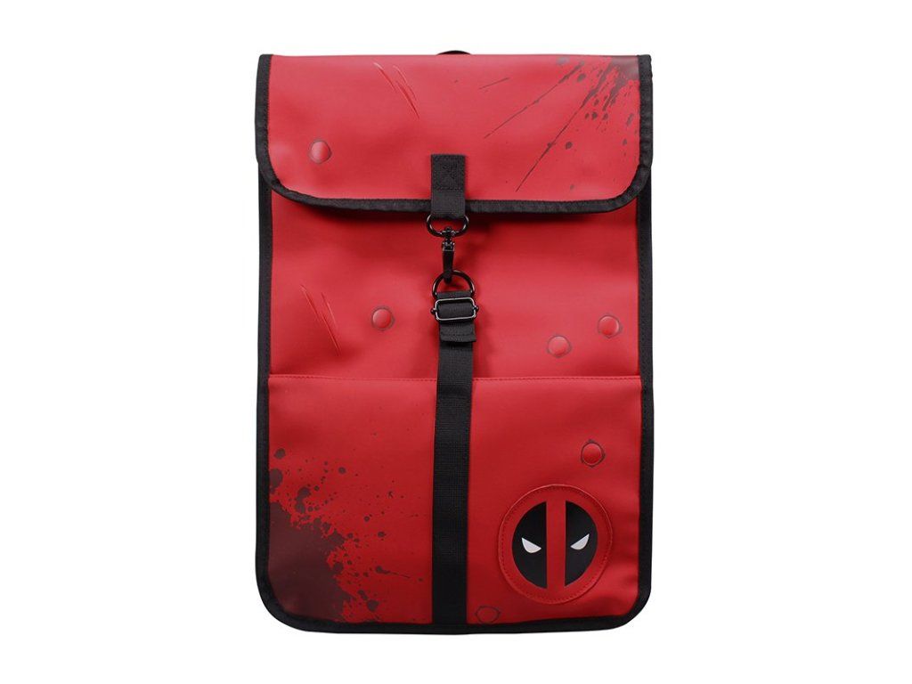 Acest rucsac roșu purpuriu este destinat tuturor fanilor anti-eroului comic Deadpool din Marvel, al cărui logo poate fi găsit pe parte din față. Rucsacul se închide cu cataramă și este potrivit pentru școală și servici. În interior veți găsi mai multe buzunare și un compartiment pentru laptop.