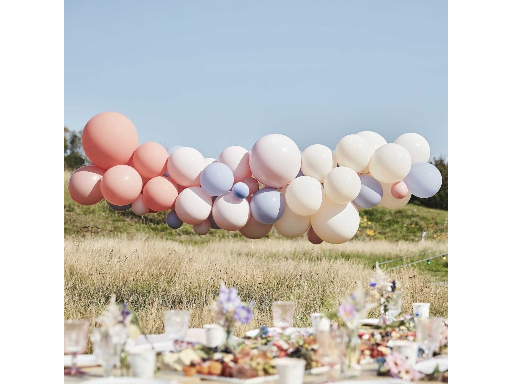 Ghirlandă cu baloane - Coral, bej deschis și albastru