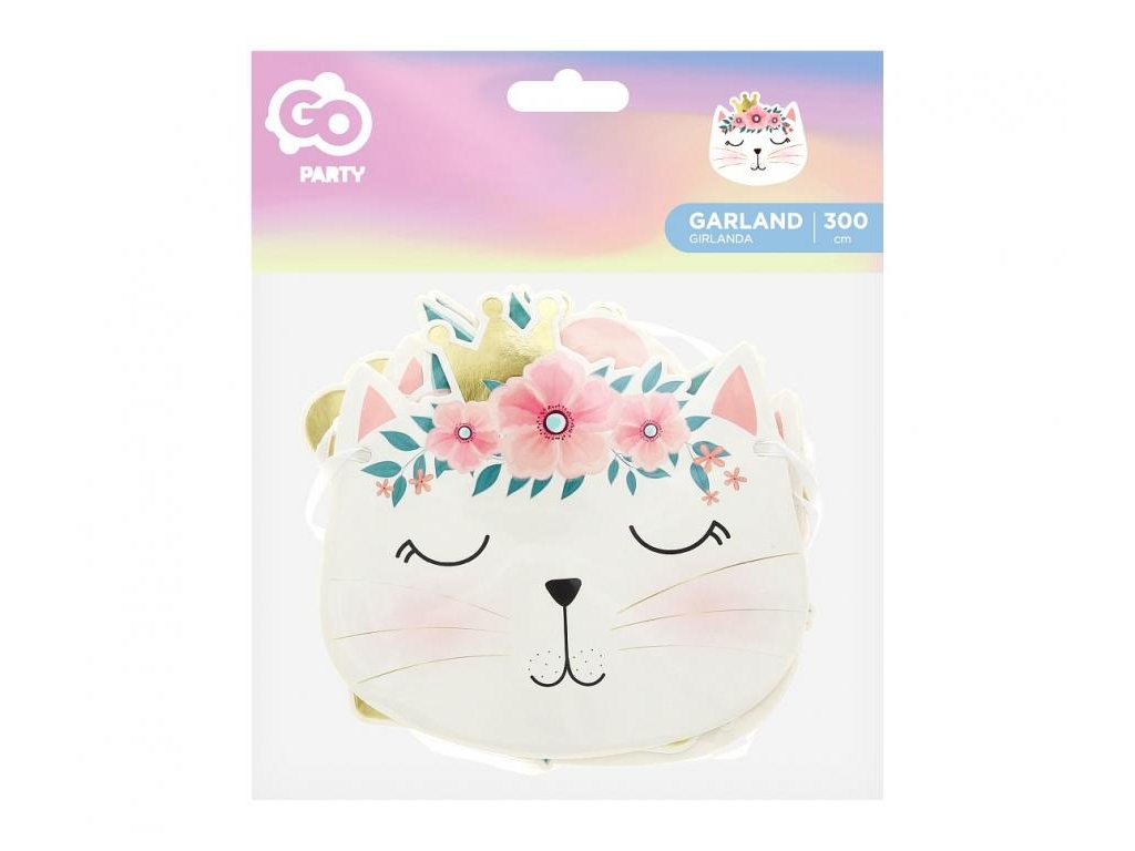 Ghirlanda cu un motiv de pisică vă poate ajuta la decorarea petrecerii. La nicio petrecere aniversară nu poate lipsi ghirlanda. Această decorațiune colorată pentru petrecere este potrivită pentru petrecerea aniversară sau petrecerea pentru copii.