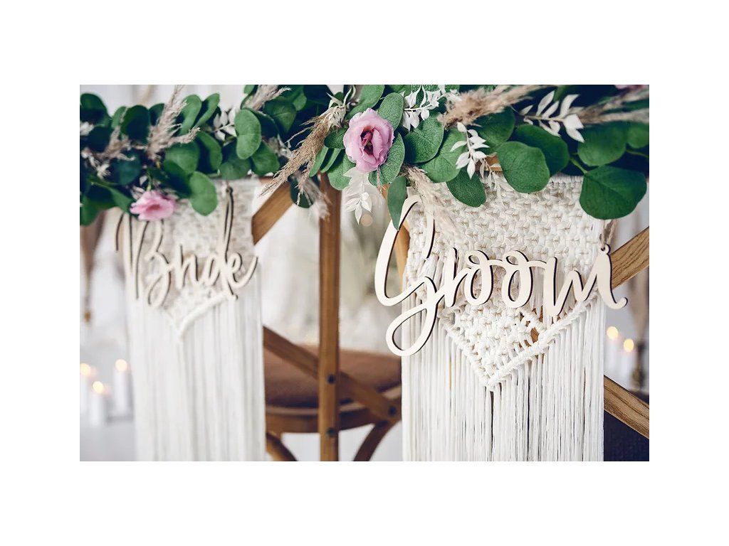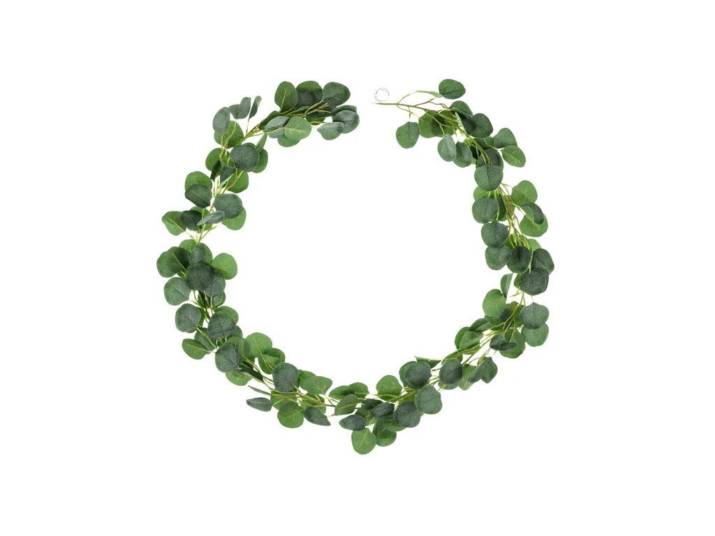 Un decor original cu care îți poți completa decorul nunții în stil vintage sau greenery. Spre deosebire de eucalipt viu, puteți folosi ghirlanda în mod repetat.