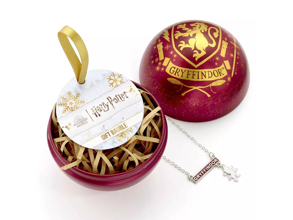 Globul de Crăciun Harry Potter cu colier Gryffindor este o decorațiune perfectă pentru fanii lumii magice. Globul, realizat din materiale de înaltă calitate, surprinde simbolistica Casei Gryffindor și adaugă un aspect elegant decorului tău de Crăciun. Colierul inclus în set este un accesoriu unic, care îți permite să porți mereu un strop de magie cu tine. Este cadoul perfect pentru Crăciun sau pentru orice ocazie specială!