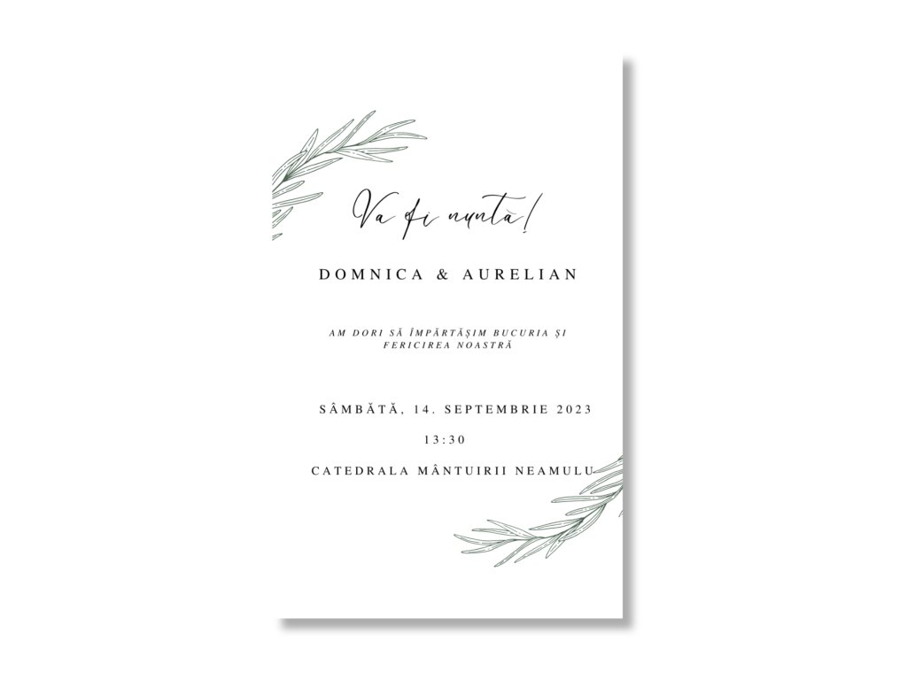 Combinația simplă de culori conferă invitațiilor un aspect elegant, care vă va încânta nu numai pe D-voastră, ci și pe invitații D-voastră.